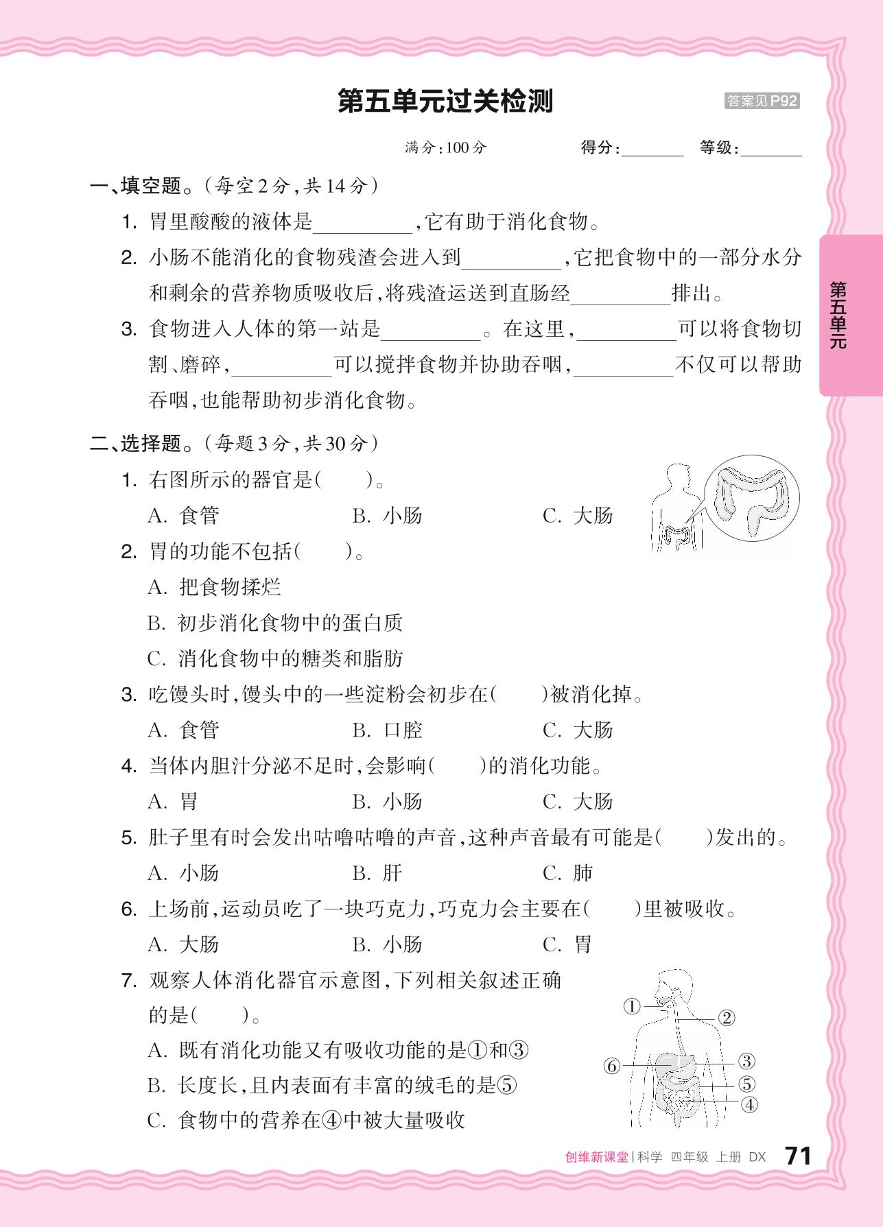 2024秋上册四年级科学大象版 第五单元过关检测_R240816110202673