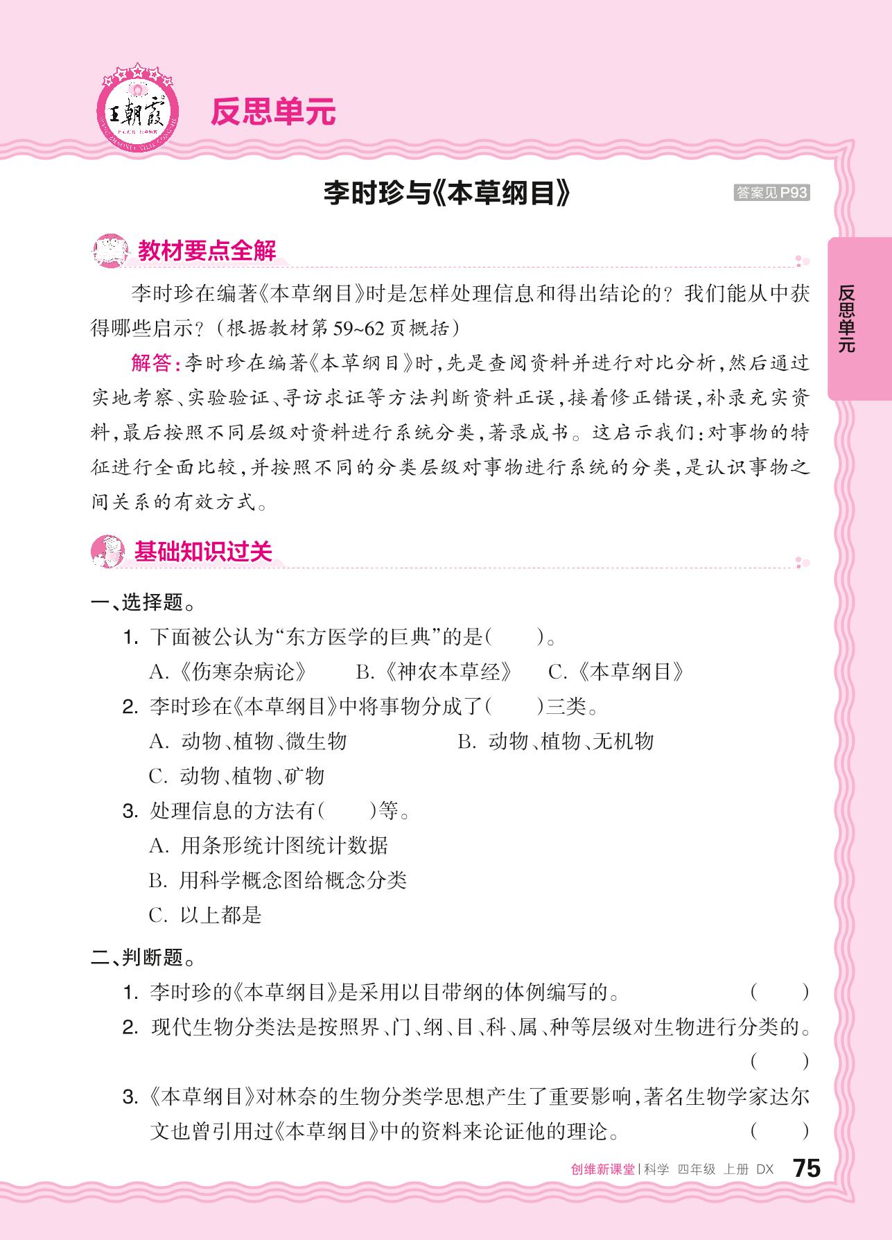 2024秋上册四年级科学大象版 反思单元——李时珍与《本草纲目》