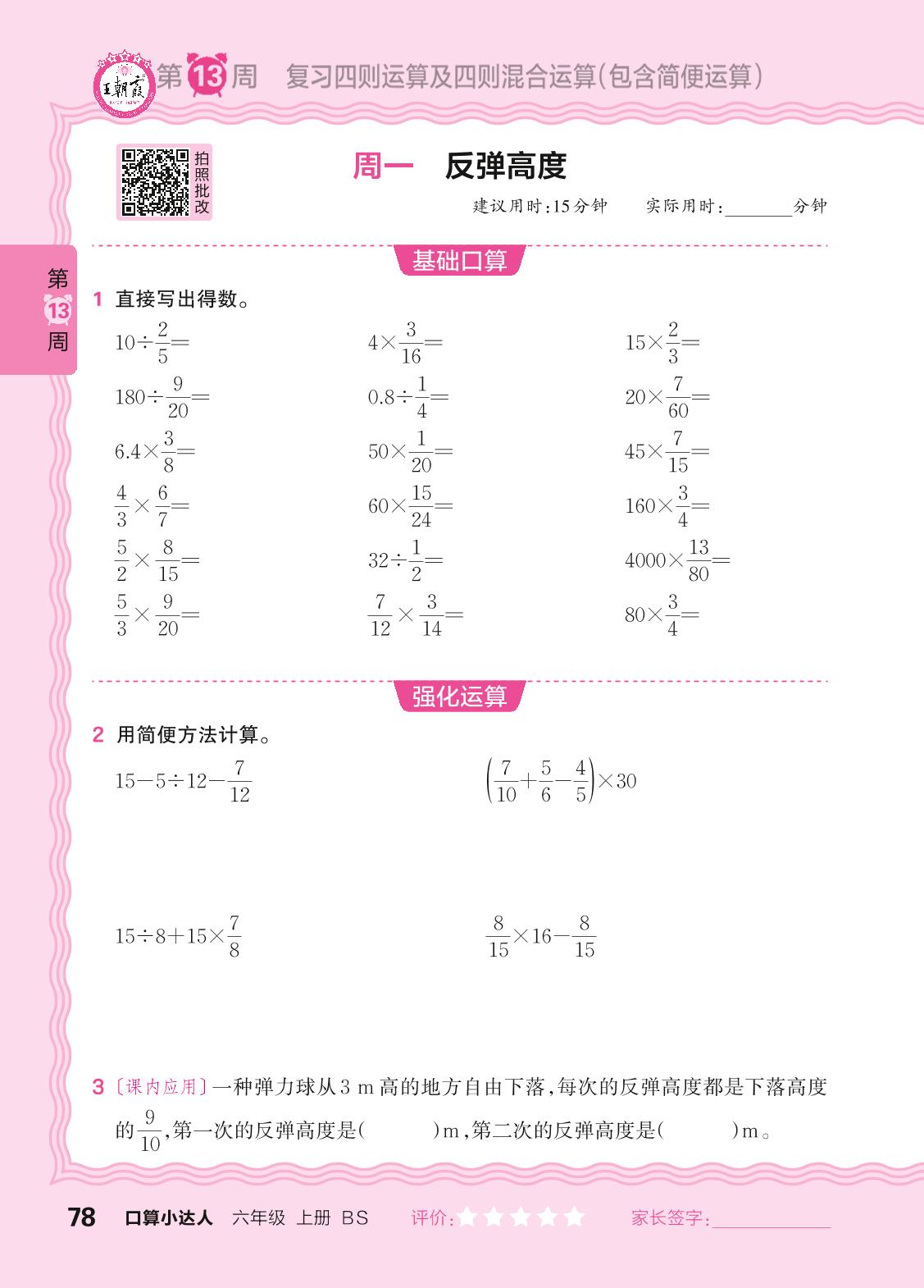 2024秋上册六年级数学北师版 口算计算专练 第13周
