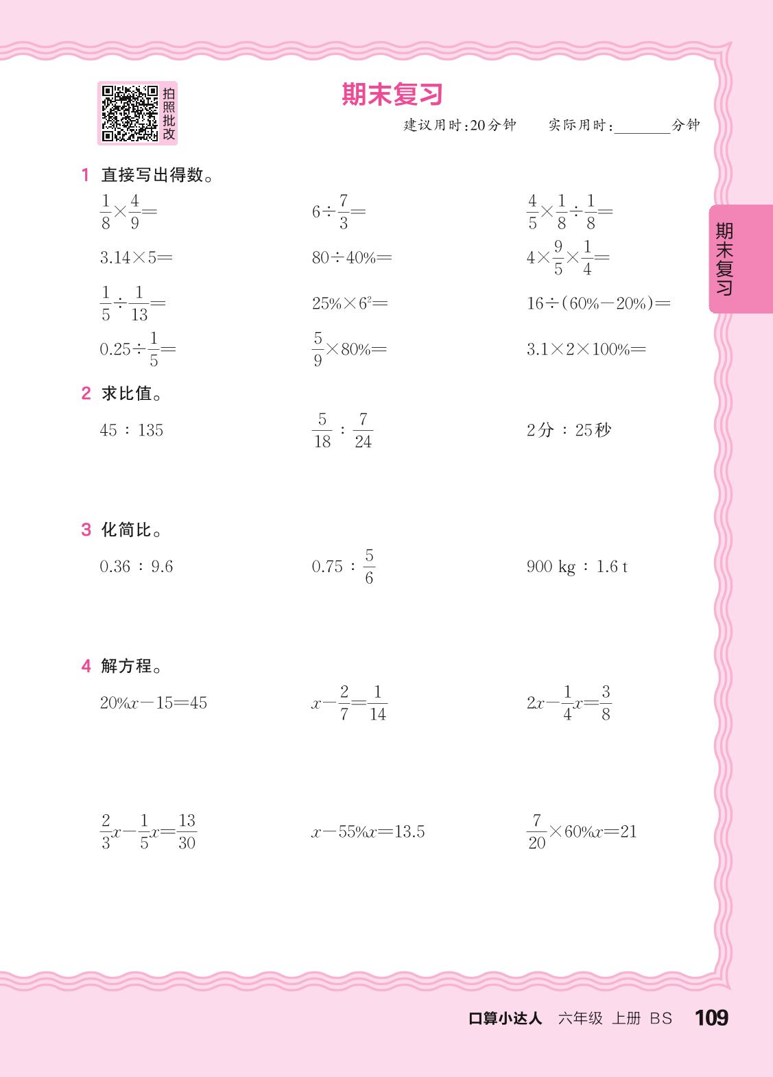 2024秋上册六年级数学北师版 期末复习(计算专练)