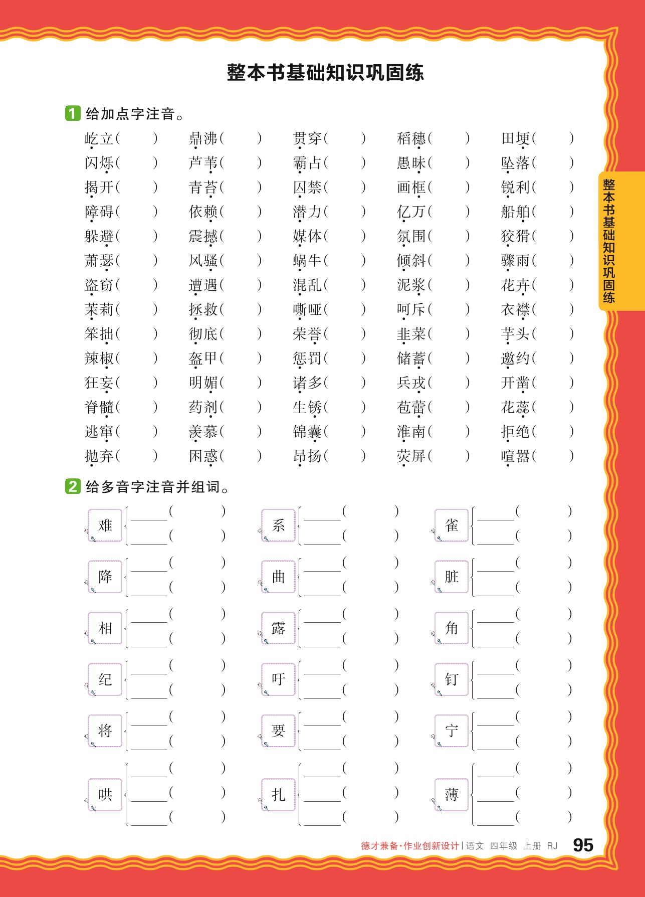 2024秋上册四年级语文人教版 整本书基础知识巩固练