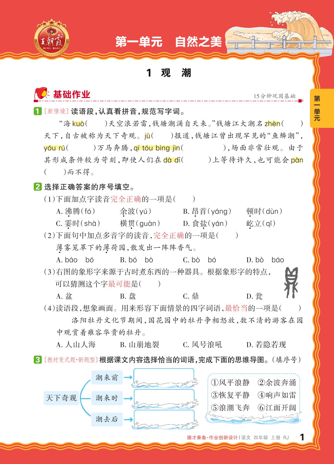 2024秋上册四年级语文人教版 第一单元 自然之美——1. 观潮