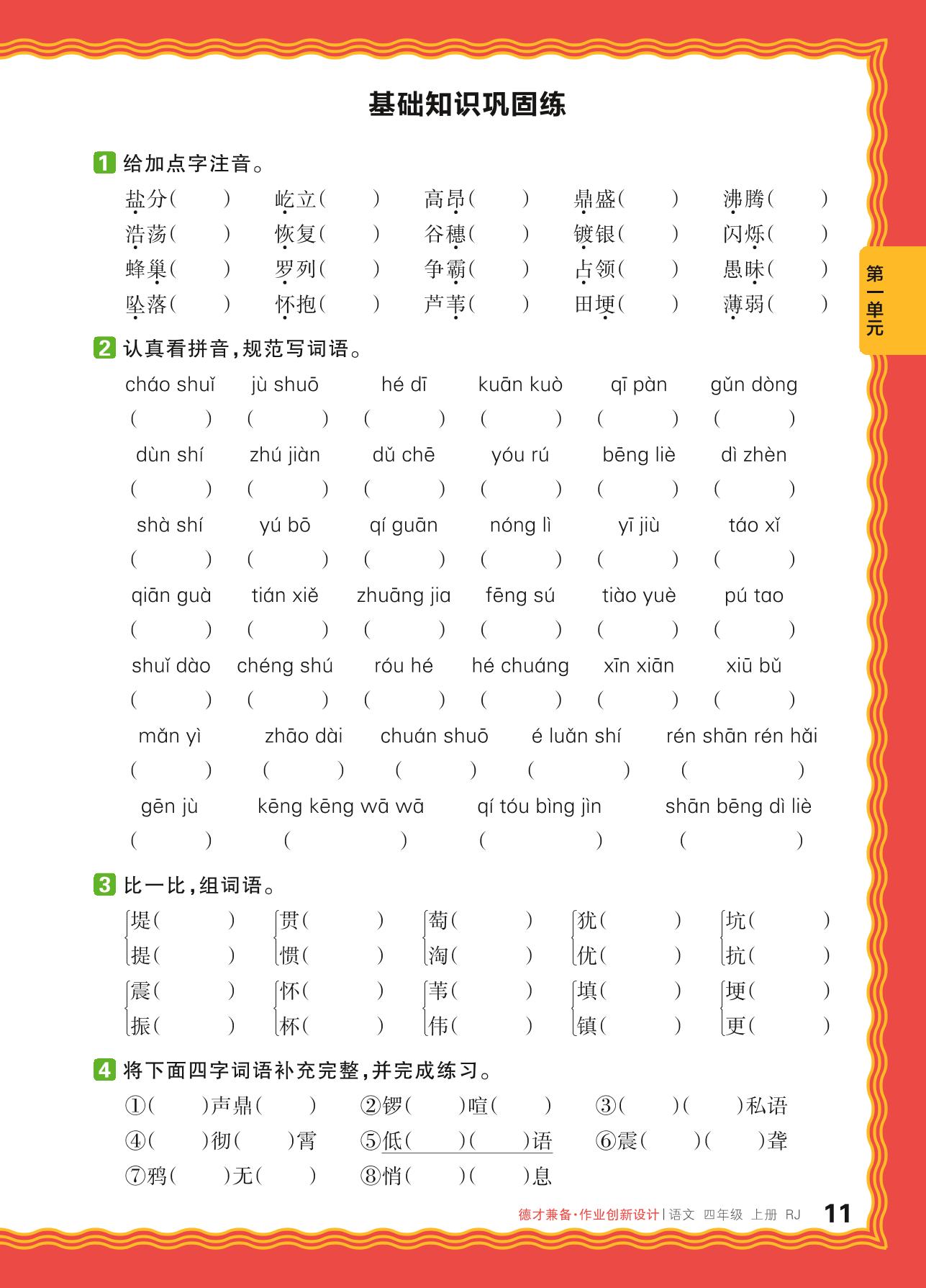 2024秋上册四年级语文人教版 第一单元 自然之美——基础知识巩固练