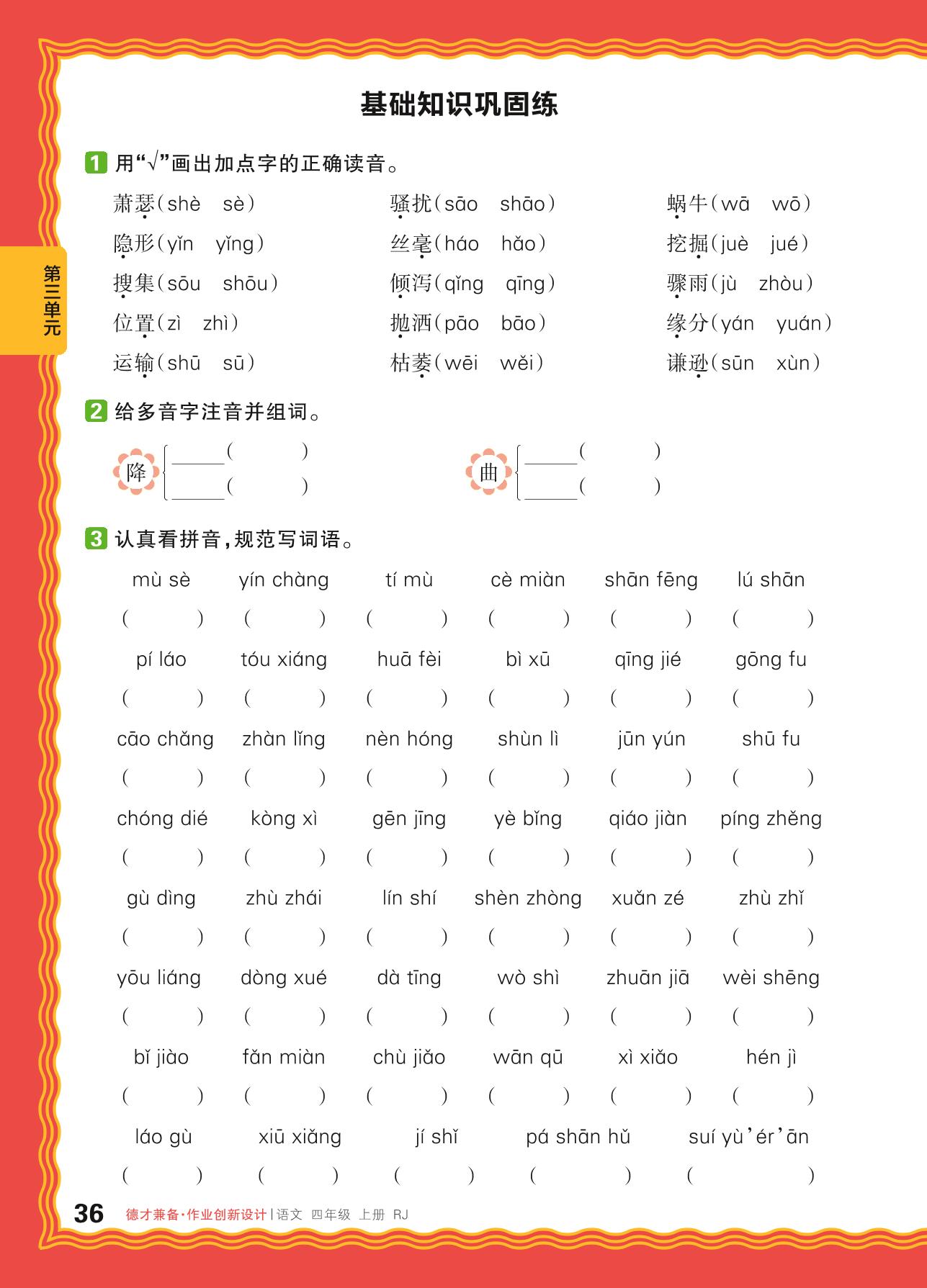 2024秋上册四年级语文人教版 第三单元 连续观察——基础知识巩固练
