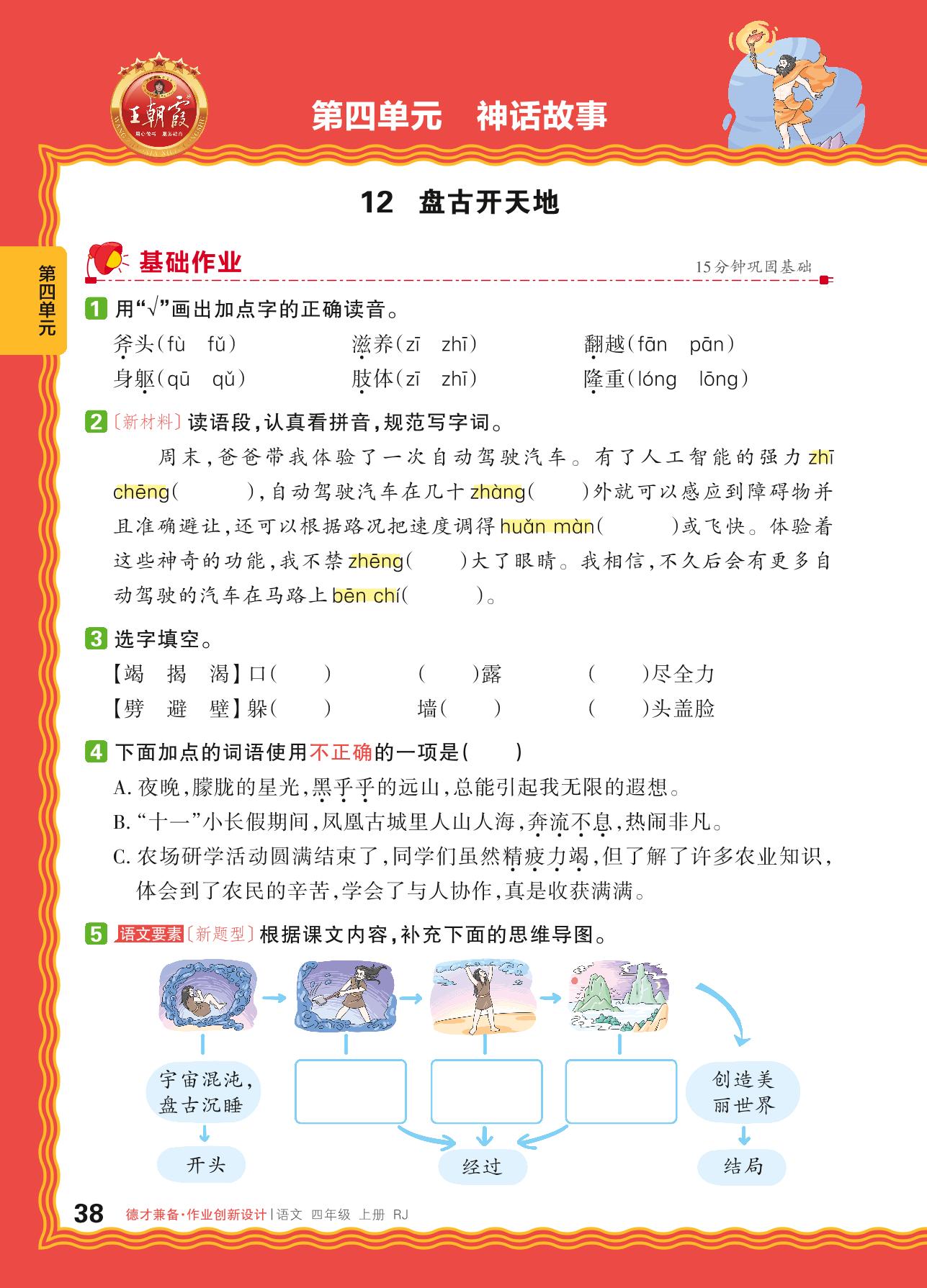 2024秋上册四年级语文人教版 第四单元 神话故事——12. 盘古开天地