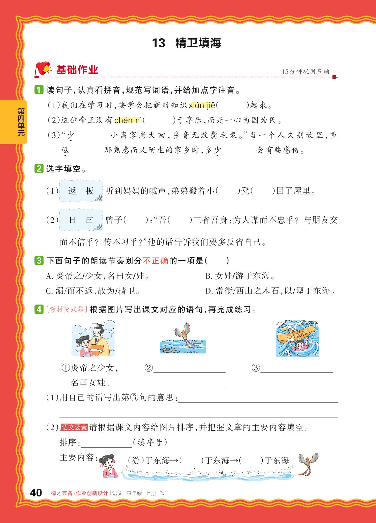 2024秋上册四年级语文人教版 第四单元 神话故事——13. 精卫填海
