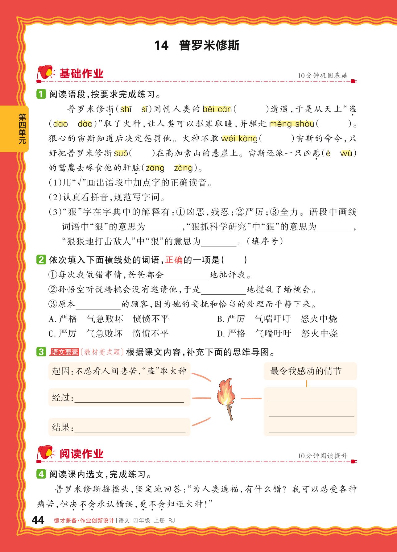 2024秋上册四年级语文人教版 第四单元 神话故事——14. 普罗米修斯