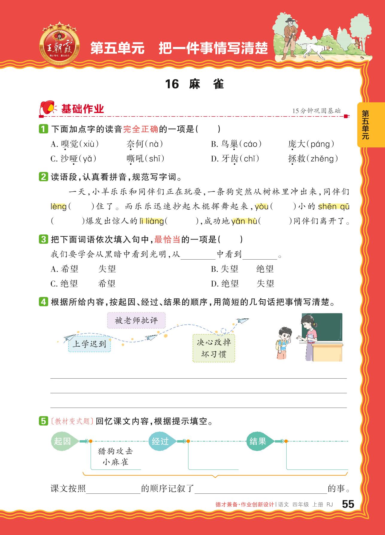 2024秋上册四年级语文人教版 第五单元 把一件事情写清楚——16. 麻雀