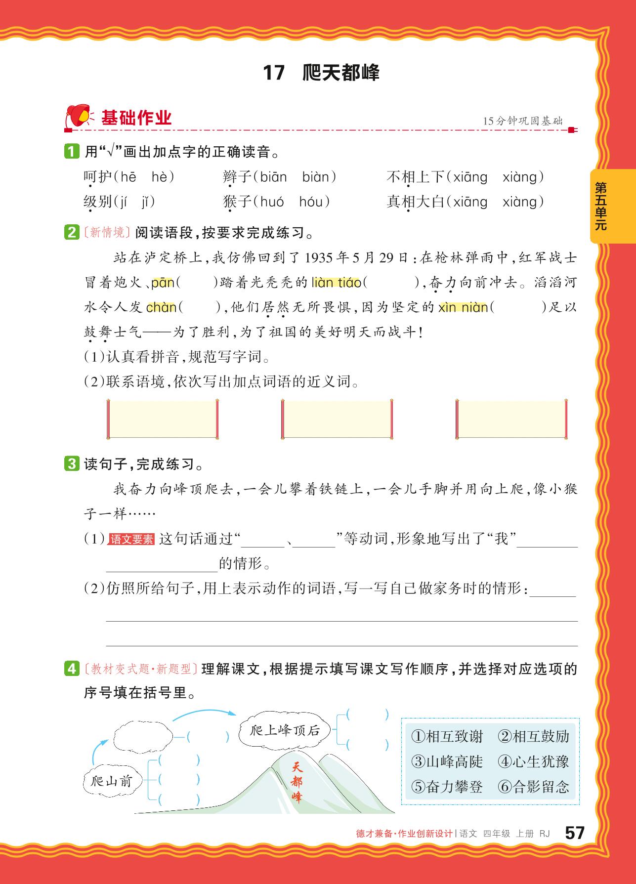 2024秋上册四年级语文人教版 第五单元 把一件事情写清楚——17. 爬天都峰