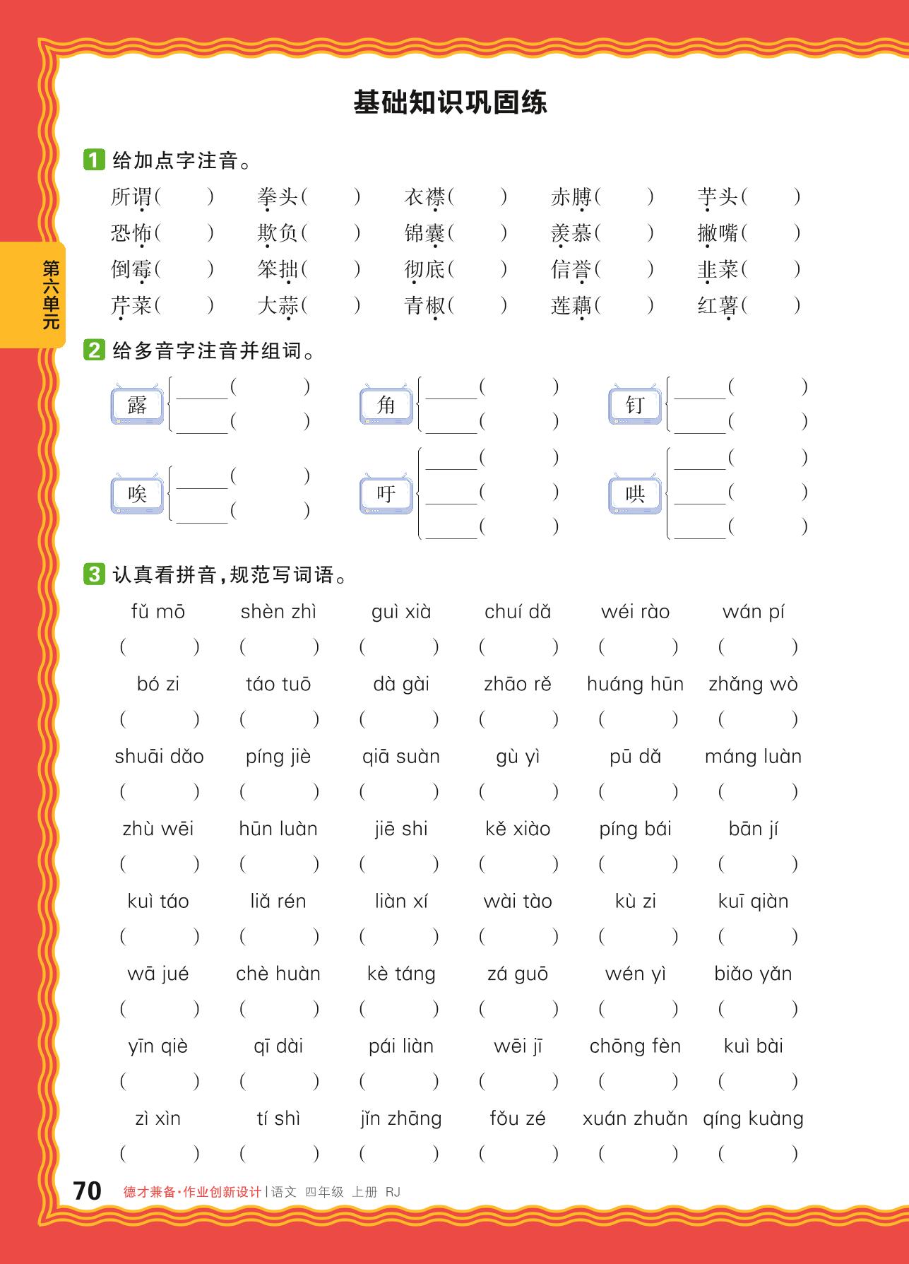 2024秋上册四年级语文人教版 第六单元 成长故事——基础知识巩固练