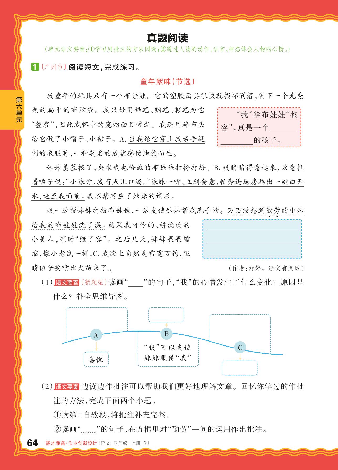 2024秋上册四年级语文人教版 第六单元 成长故事——真题阅读