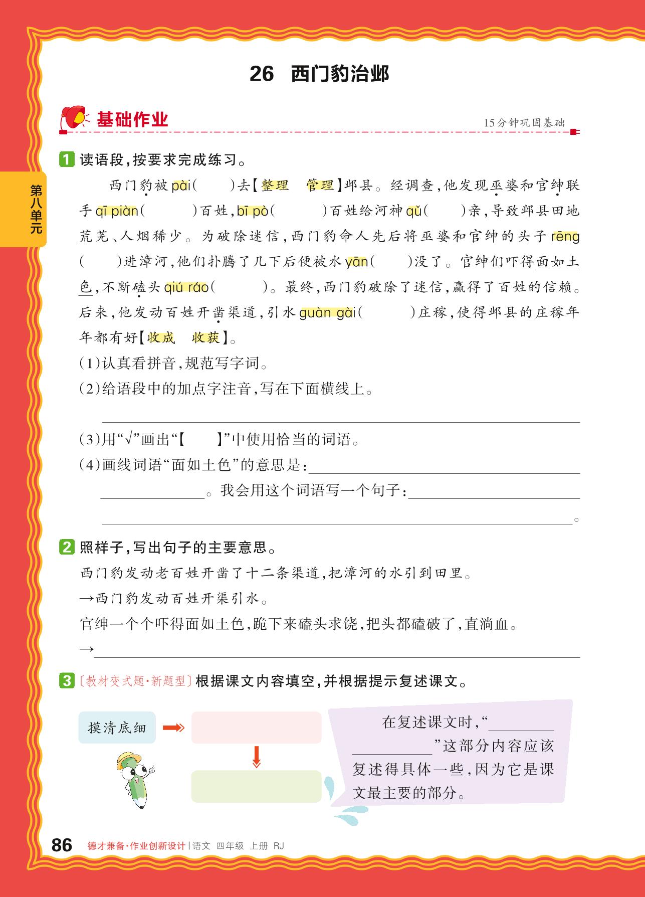 2024秋上册四年级语文人教版 第八单元 历史传说故事——26. 西门豹治邺