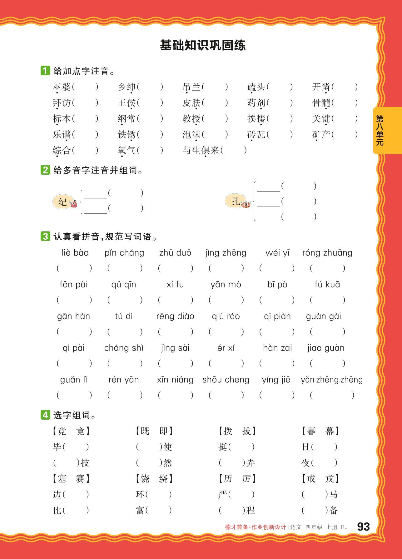 四年级语文人教版上册单元卷