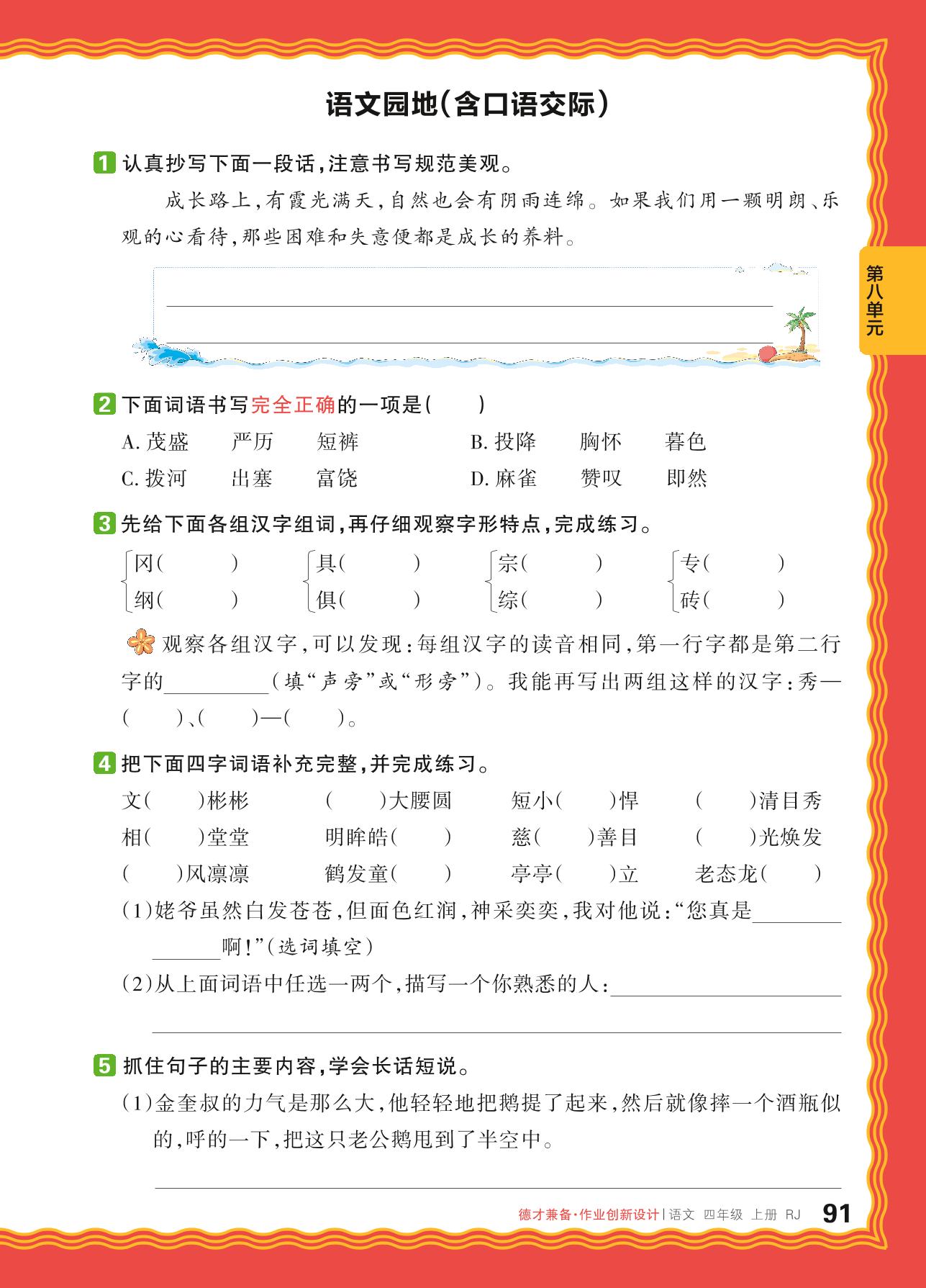 2024秋上册四年级语文人教版 第八单元 历史传说故事——语文园地(含口语交际)