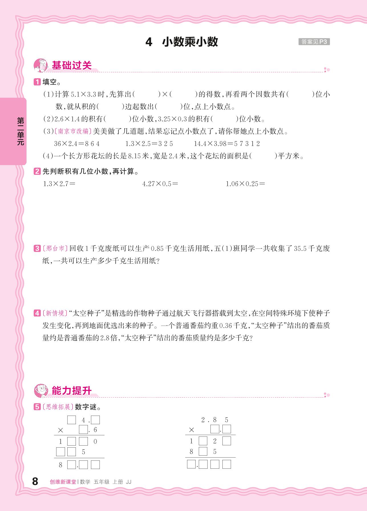 2024秋上册五年级数学冀教版 第二单元 小数乘法——4. 小数乘小数