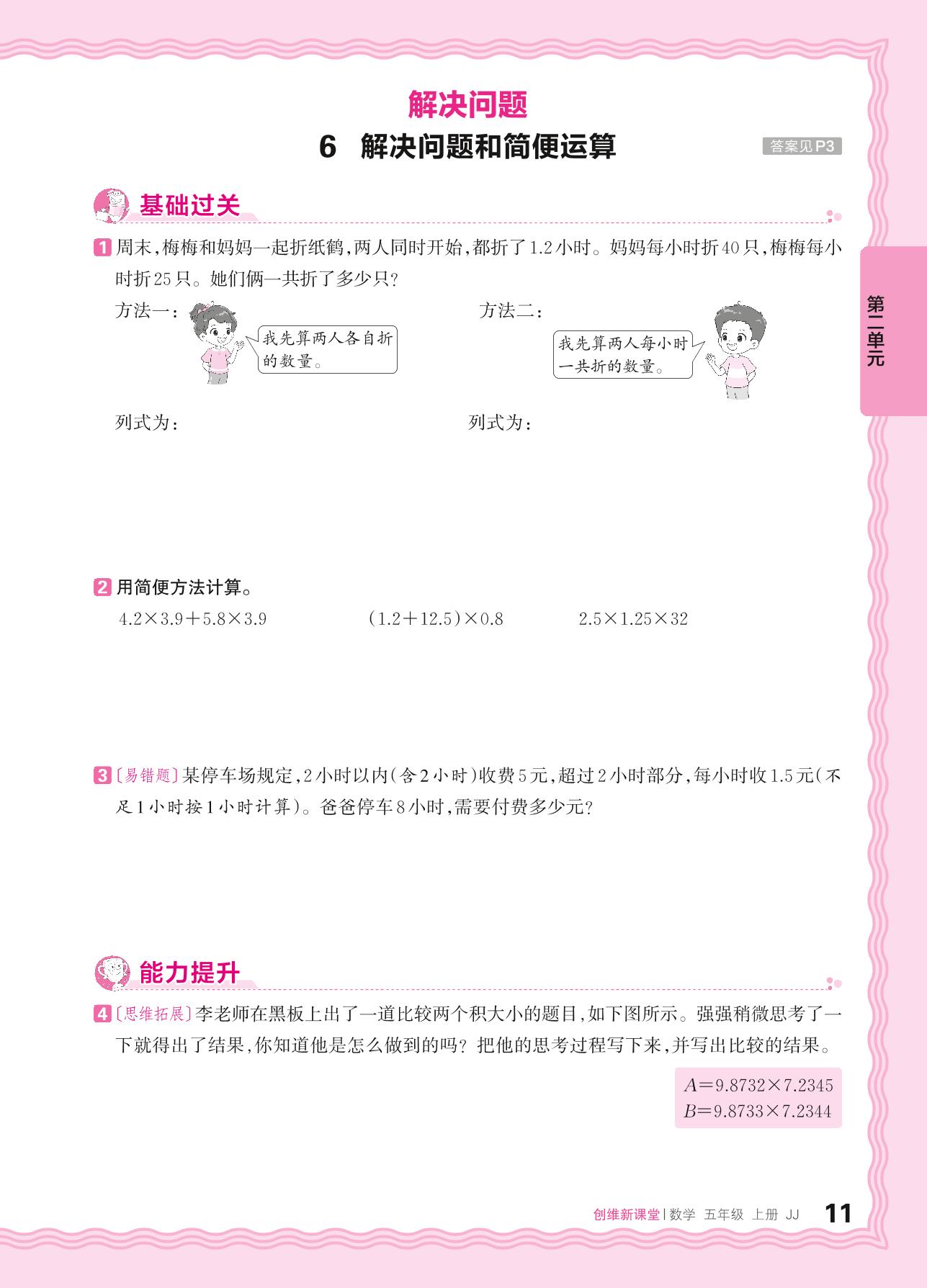 2024秋上册五年级数学冀教版 第二单元 小数乘法——6. 解决问题和简便运算