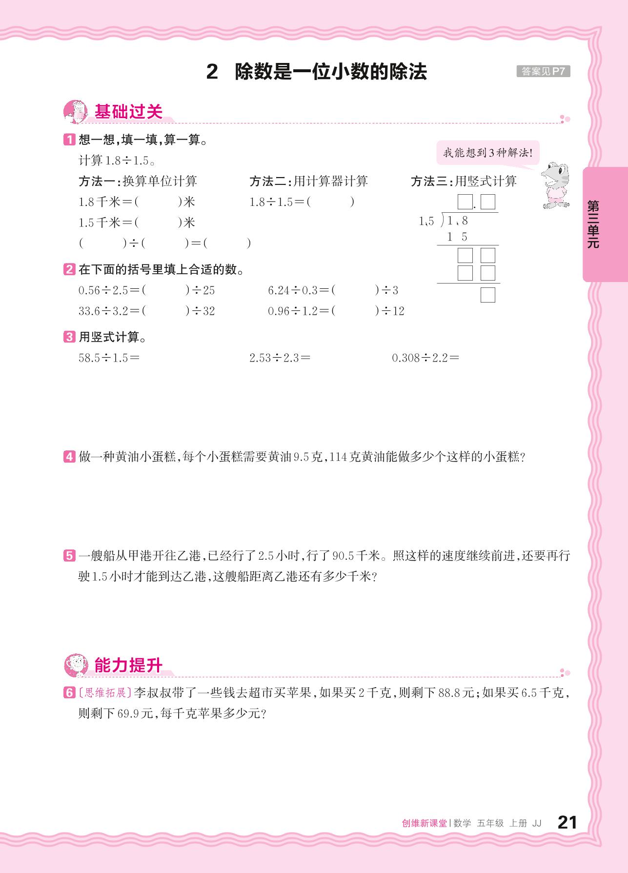 2024秋上册五年级数学冀教版 第三单元 小数除法——2. 除数是一位小数的除法