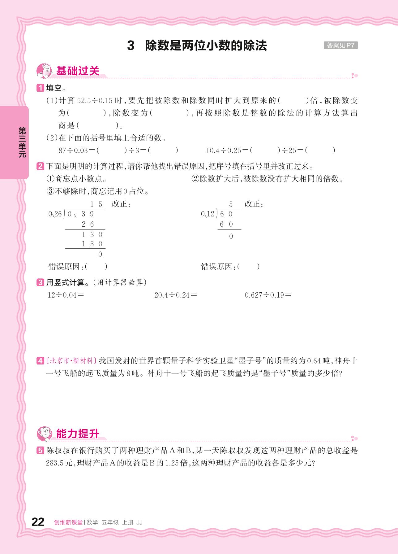 2024秋上册五年级数学冀教版 第三单元 小数除法——3. 除数是两位小数的除法