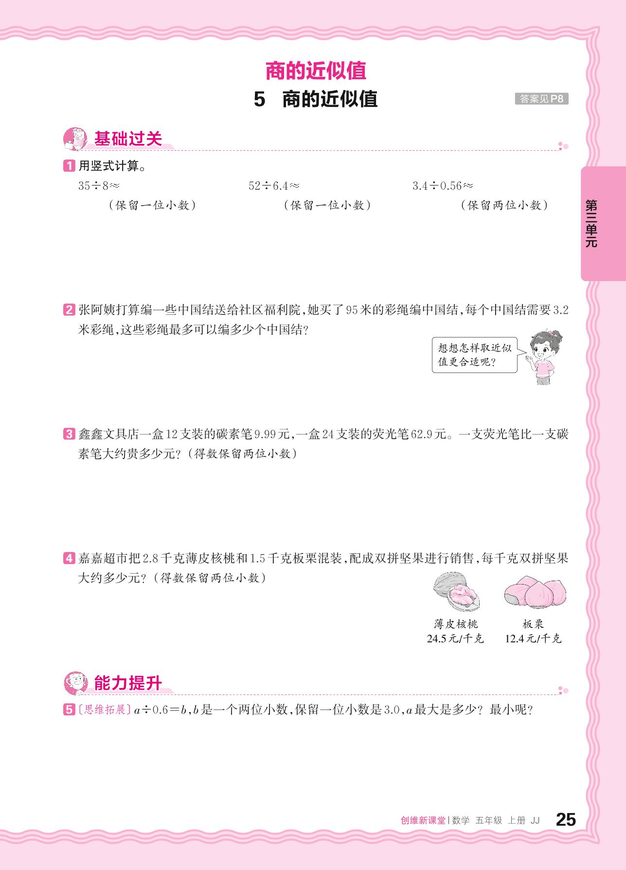 2024秋上册五年级数学冀教版 第三单元 小数除法——5. 商的近似值