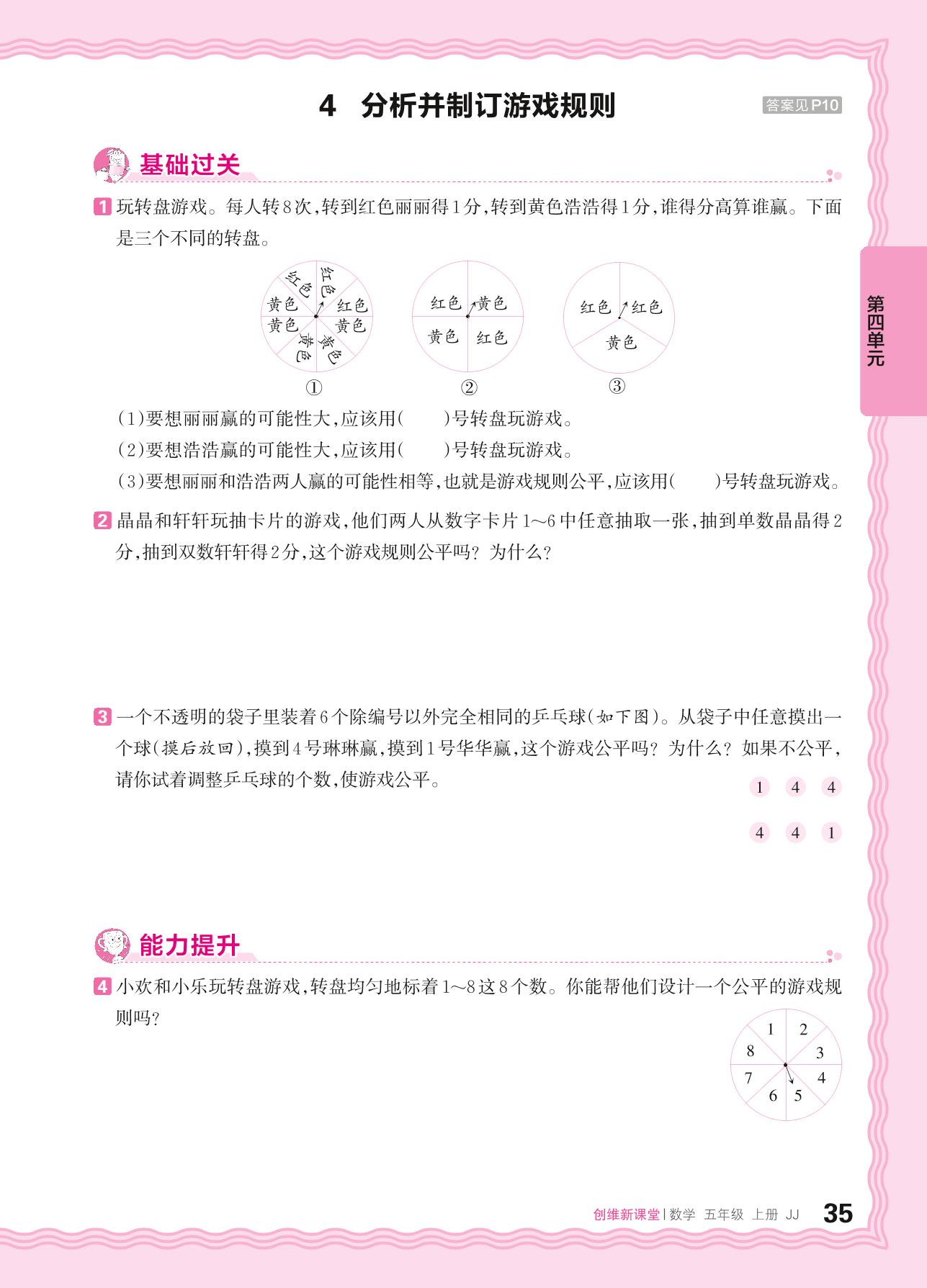 2024秋上册五年级数学冀教版 第四单元 可能性——4. 分析并制订游戏规则