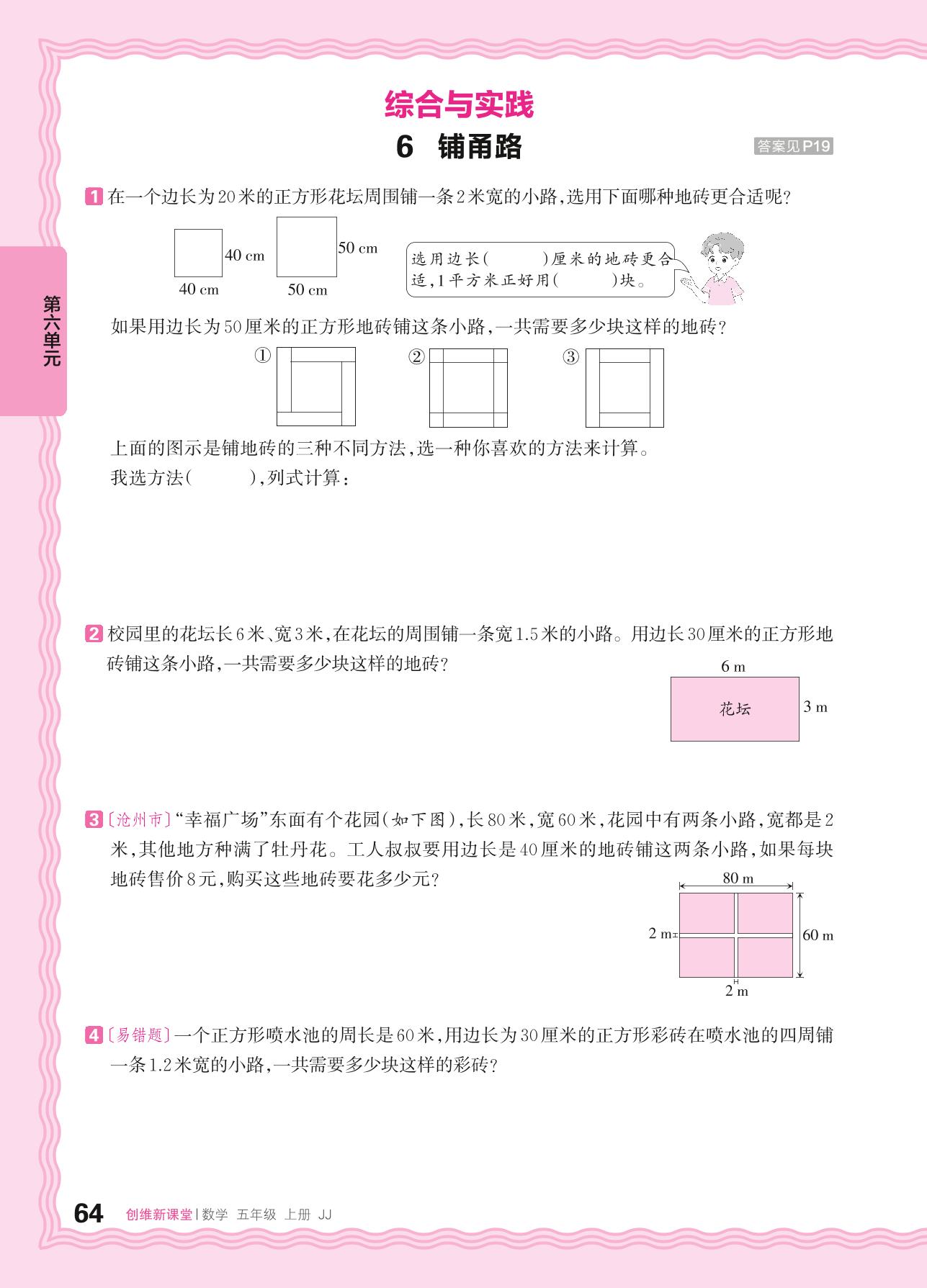 2024秋上册五年级数学冀教版 第六单元 多边形的面积——6. 铺甬路