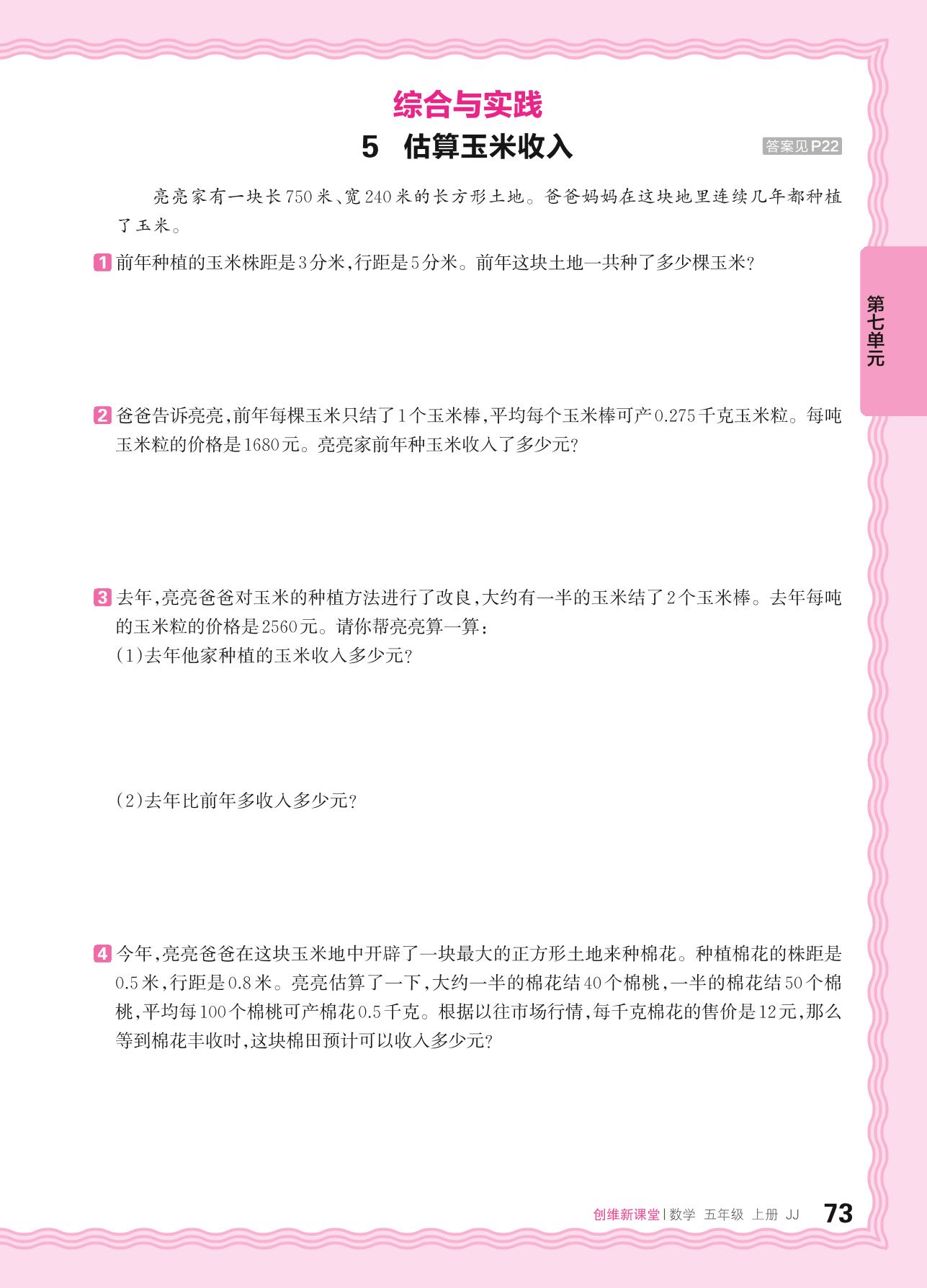 2024秋上册五年级数学冀教版 第七单元 土地的面积——5. 估算玉米收入