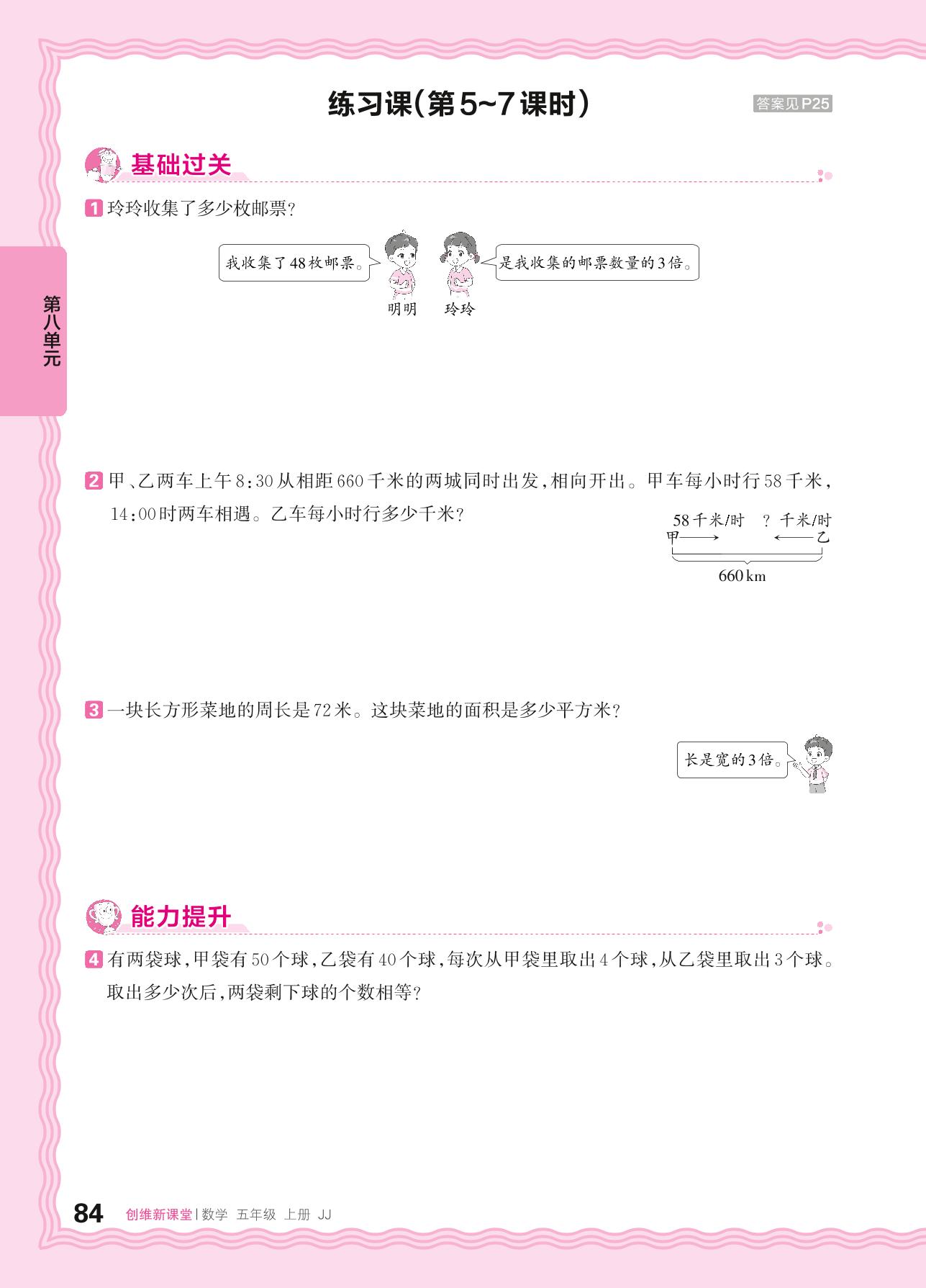 2024秋上册五年级数学冀教版 第八单元 方程——列方程解决问题练习课