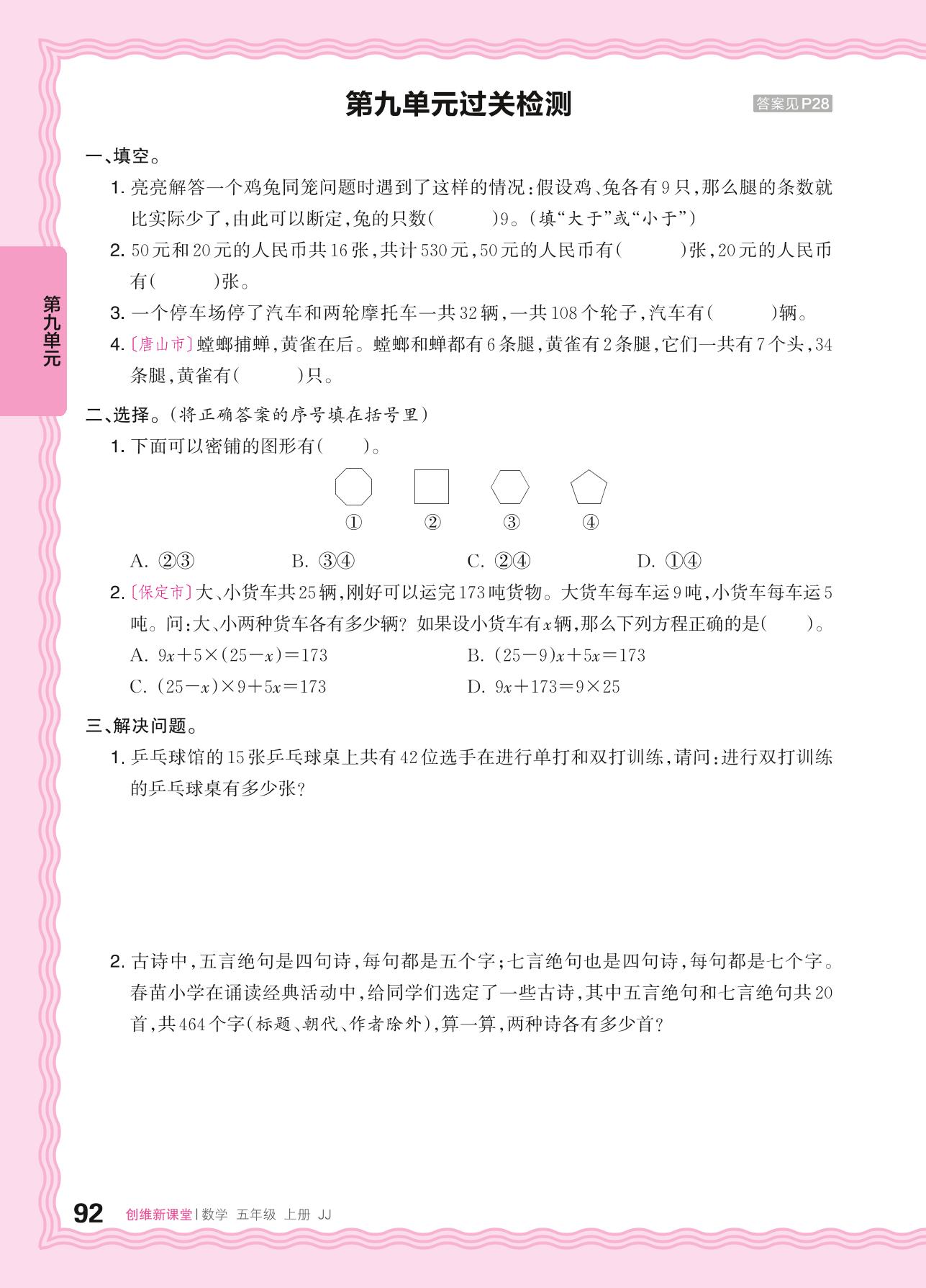 2024秋上册五年级数学冀教版 第九单元过关检测