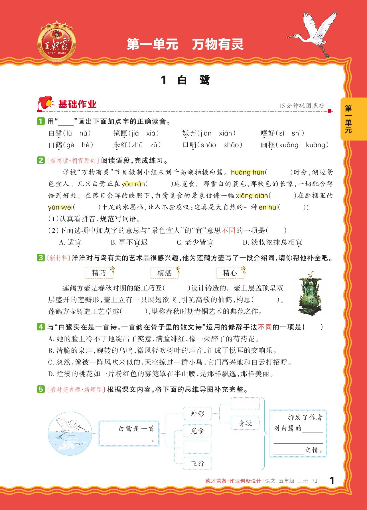 2024秋上册五年级语文人教版 第一单元 万物有灵——1. 白鹭