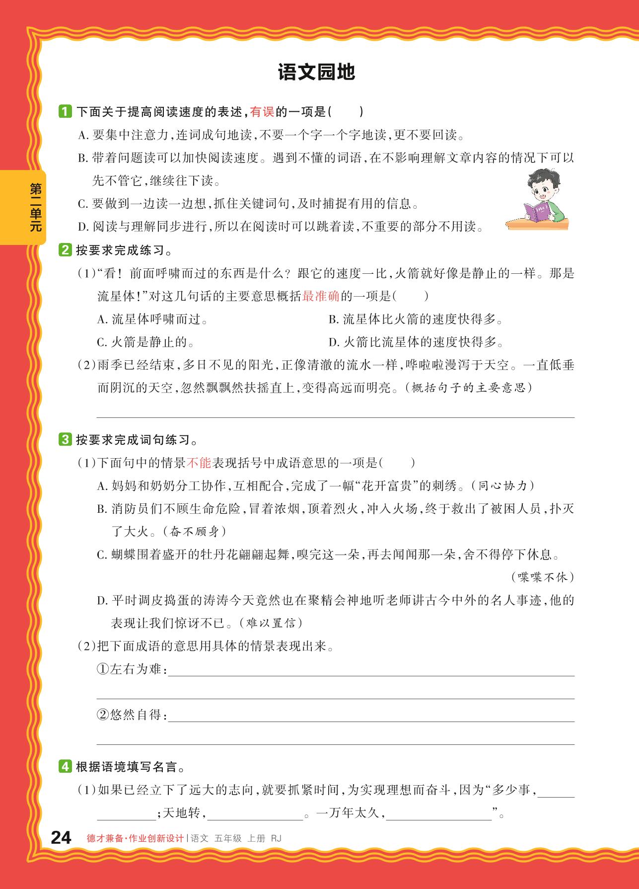2024秋上册五年级语文人教版 第二单元 阅读策略:提高阅读的速度——语文园地
