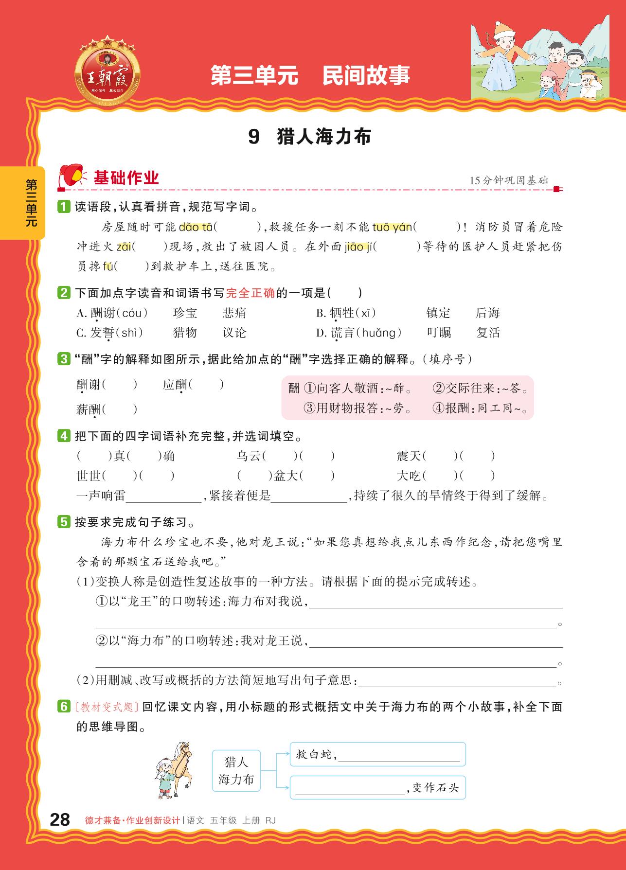 2024秋上册五年级语文人教版 第三单元 民间故事——9. 猎人海力布