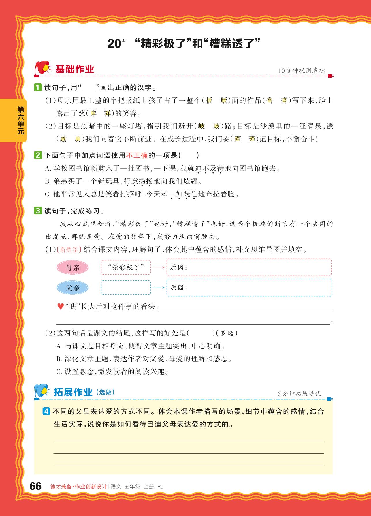 2024秋上册五年级语文人教版 第六单元 舐犊情深——20. “精彩极了”和“糟糕透了”