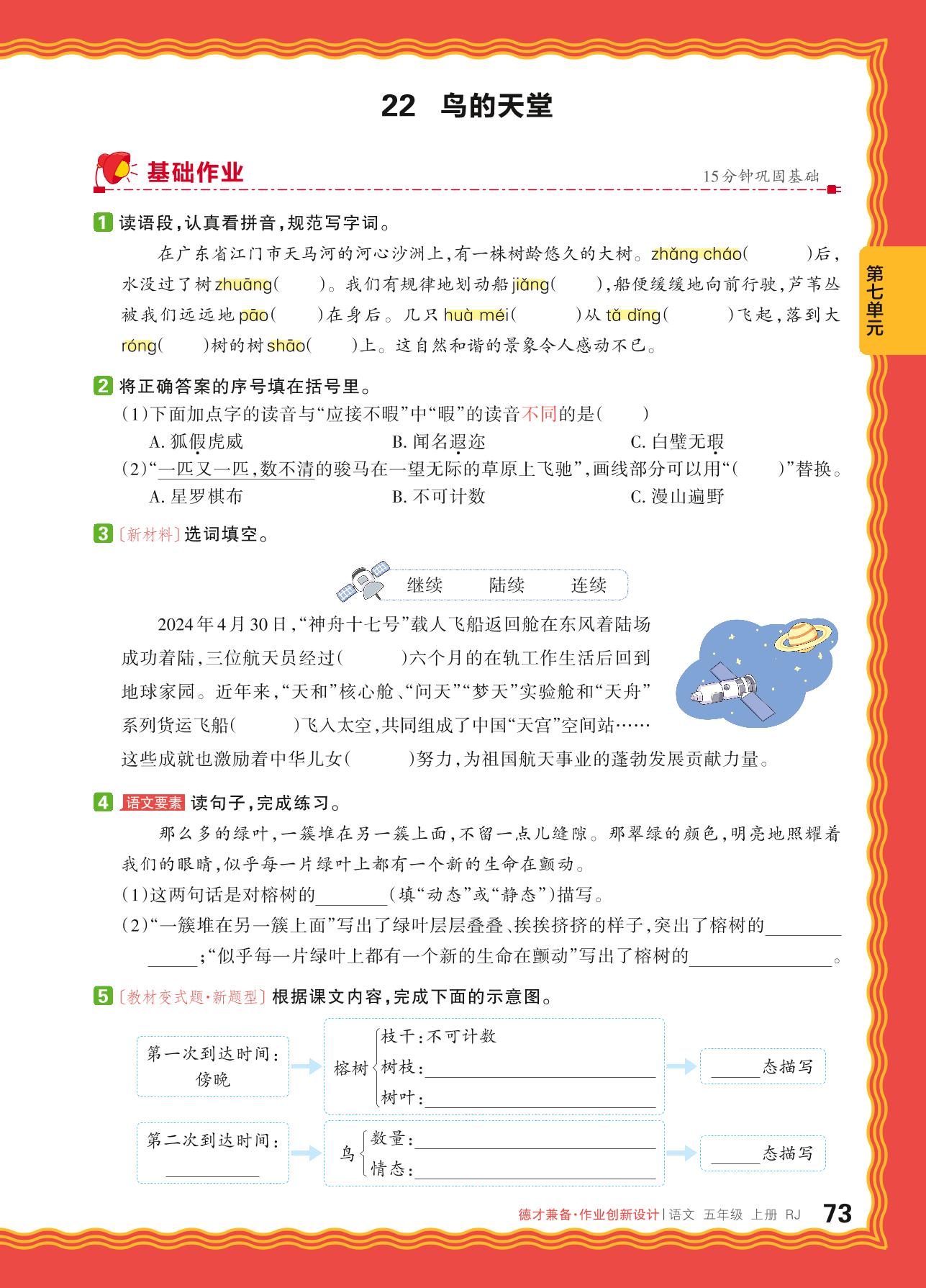 2024秋上册五年级语文人教版 第七单元 自然之趣——22. 鸟的天堂