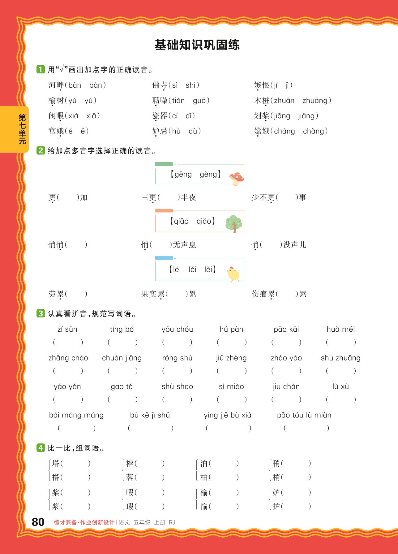 2024秋上册五年级语文人教版 第七单元 自然之趣——基础知识巩固练