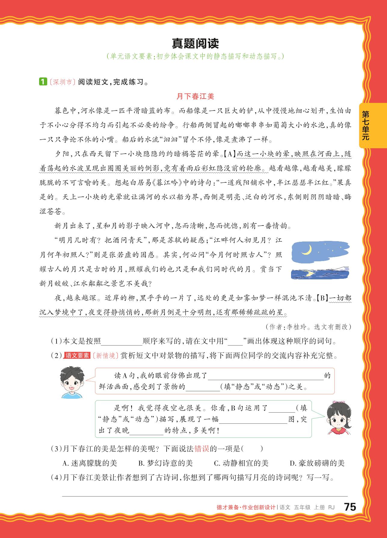 2024秋上册五年级语文人教版 第七单元 自然之趣——真题阅读