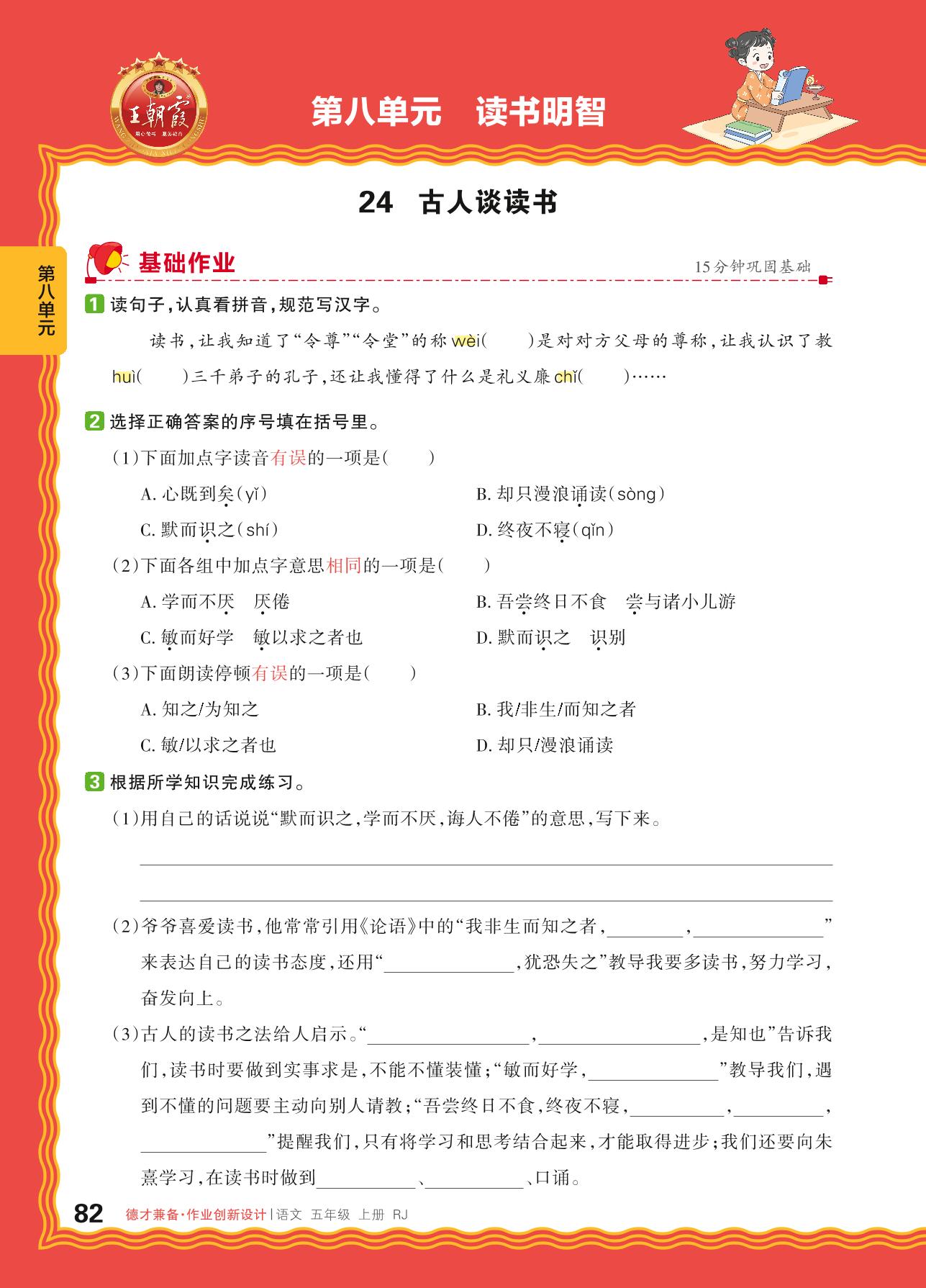 2024秋上册五年级语文人教版 第八单元 读书明智——24. 古人谈读书