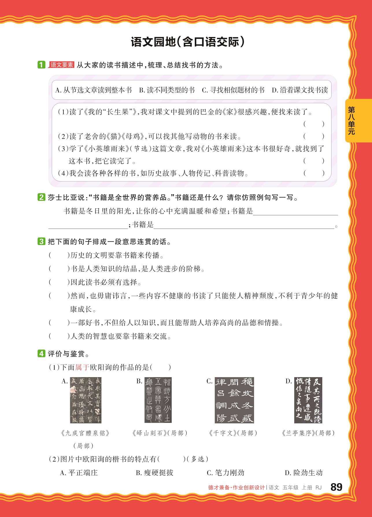 2024秋上册五年级语文人教版 第八单元 读书明智——语文园地(含口语交际)
