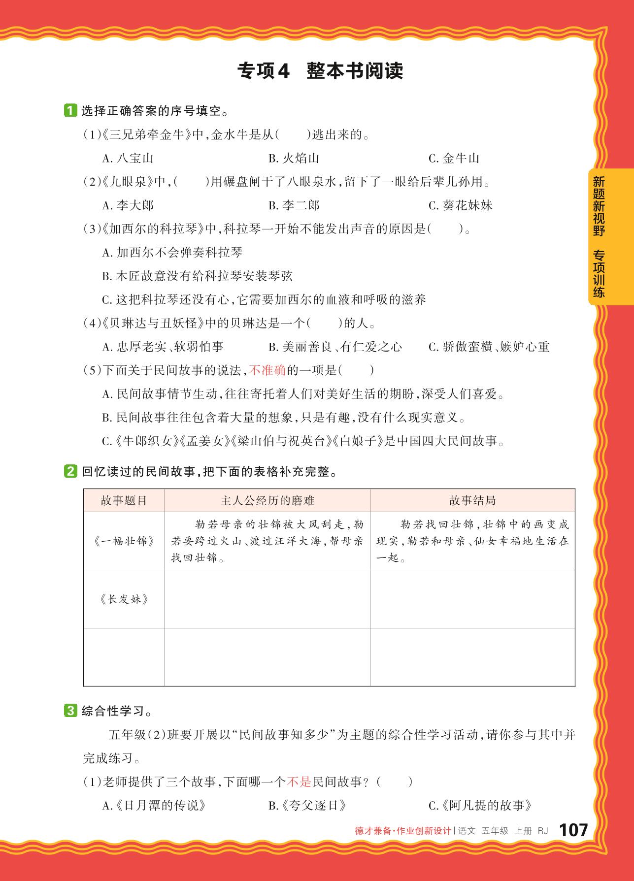 2024秋上册五年级语文人教版 新题新视野 专项训练——整本书阅读【4】