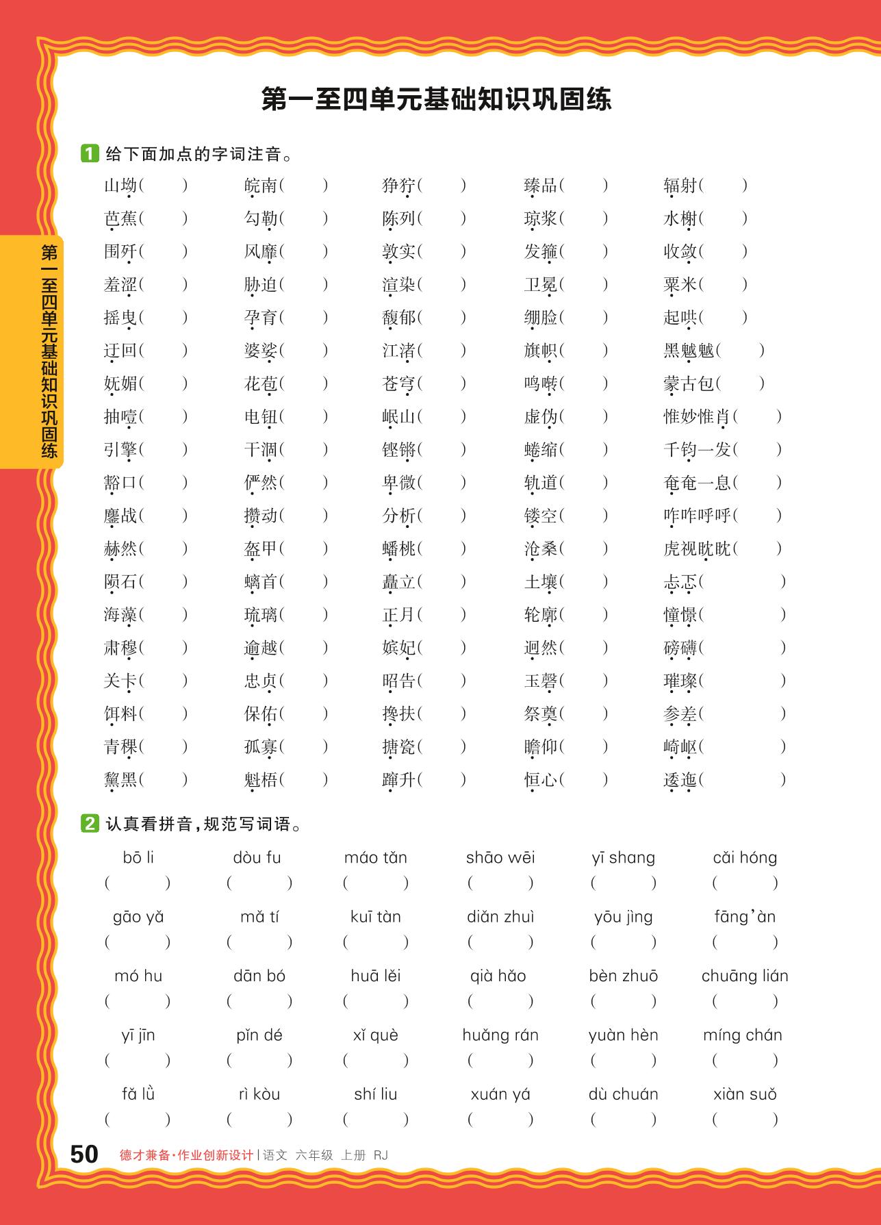 2024秋上册六年级语文人教版 第一至四单元基础知识巩固练