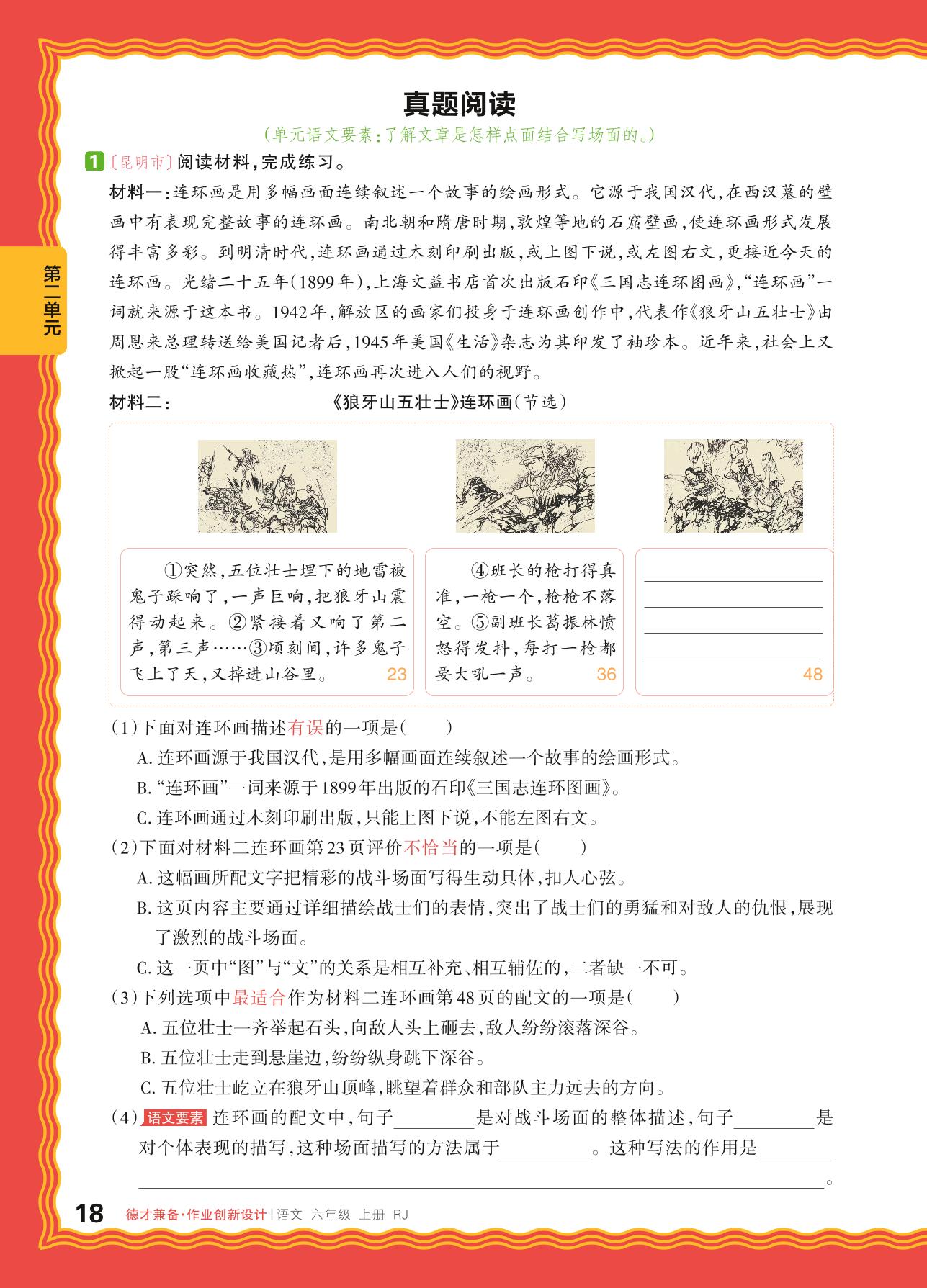 2024秋上册六年级语文人教版 第二单元 革命岁月——真题阅读