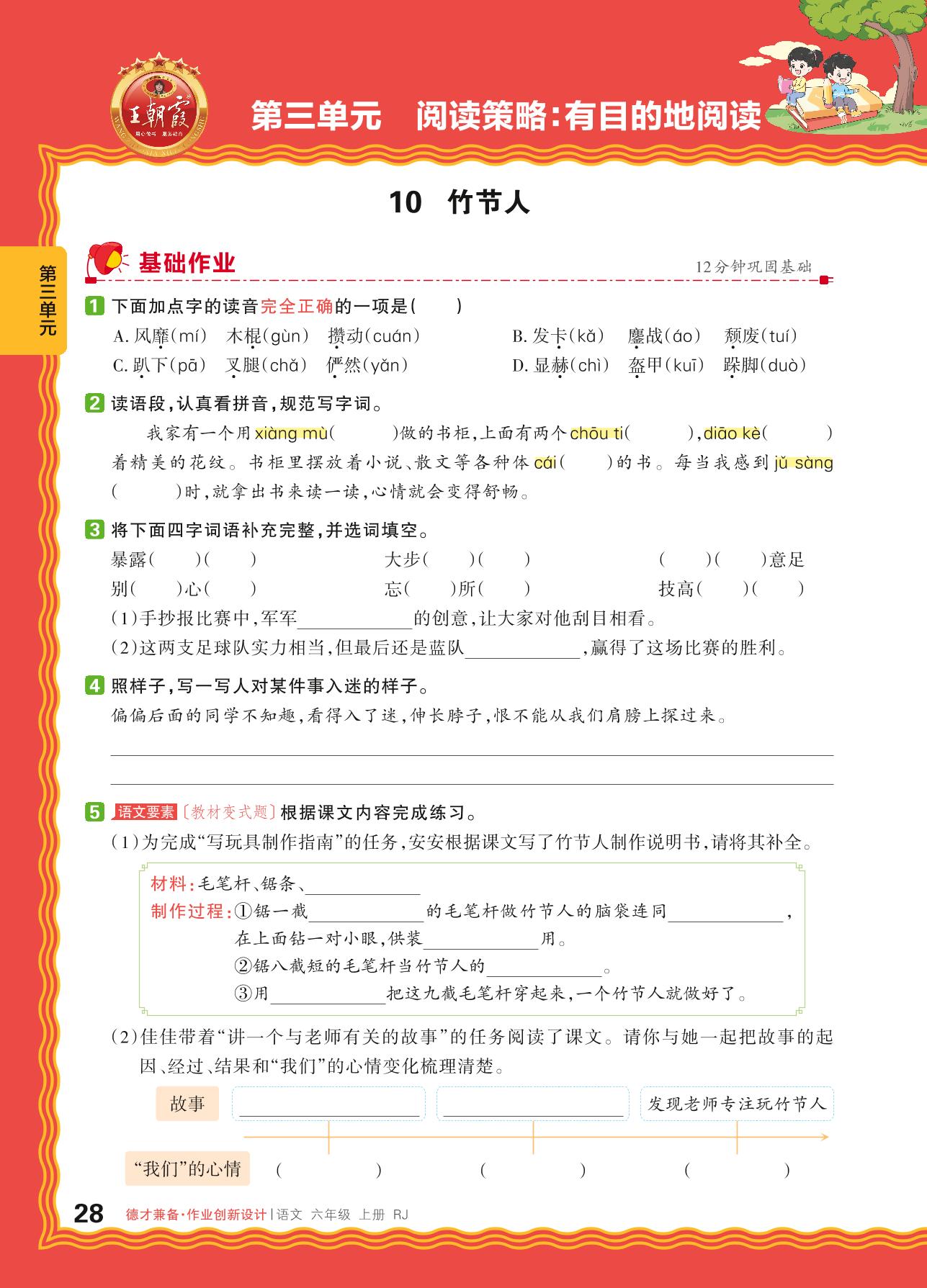 2024秋上册六年级语文人教版 第三单元 阅读策略:有目的地阅读——10. 竹节人