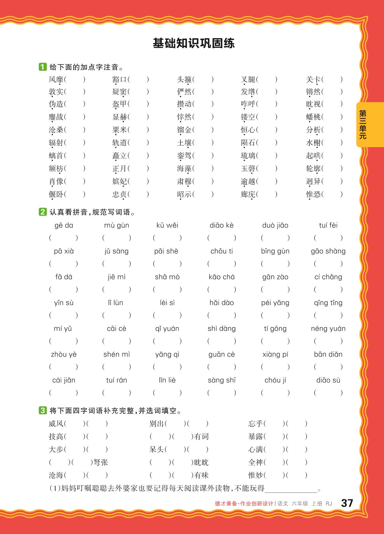六年级语文人教版上册单元卷