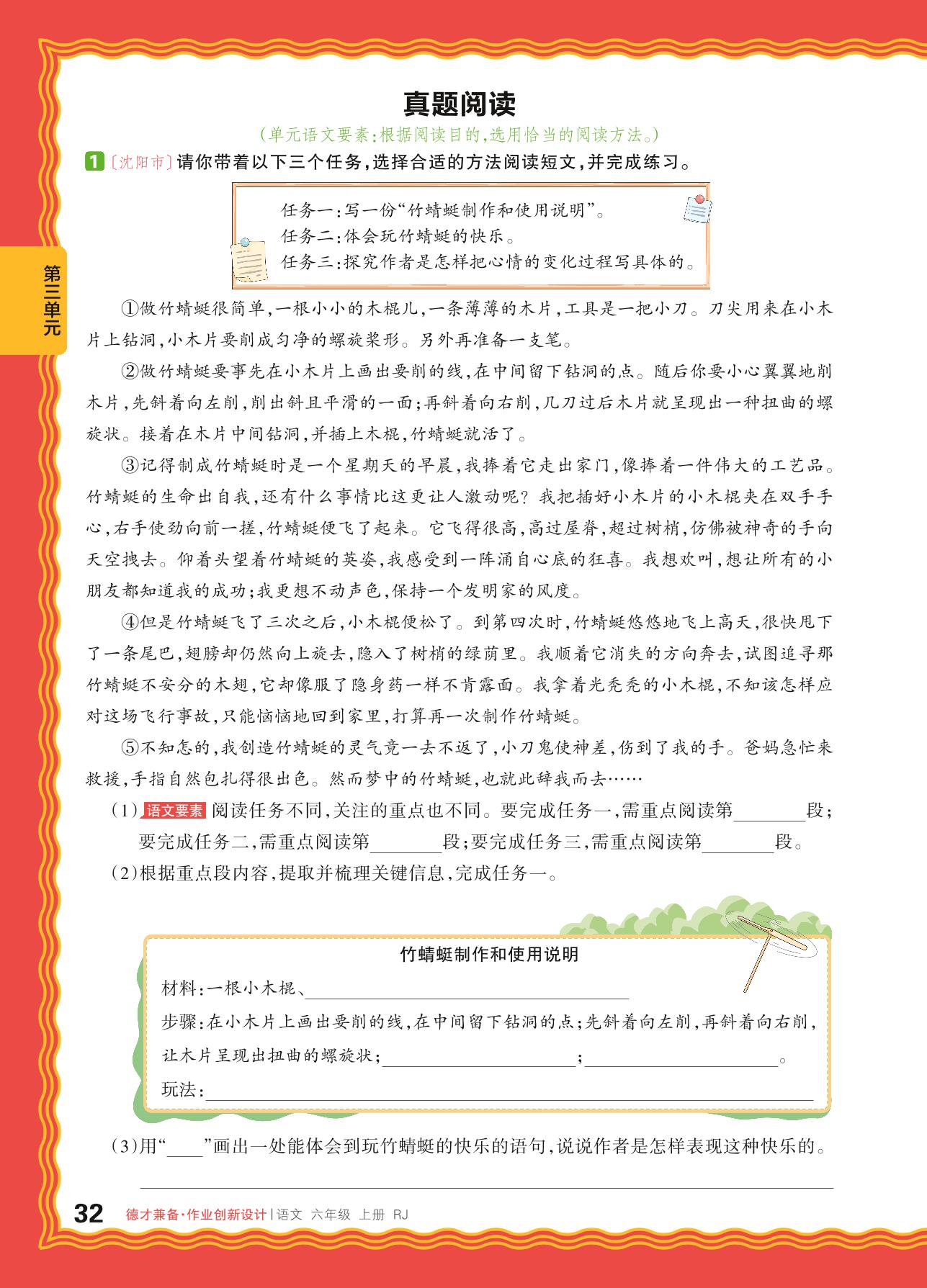 2024秋上册六年级语文人教版 第三单元 阅读策略:有目的地阅读——真题阅读
