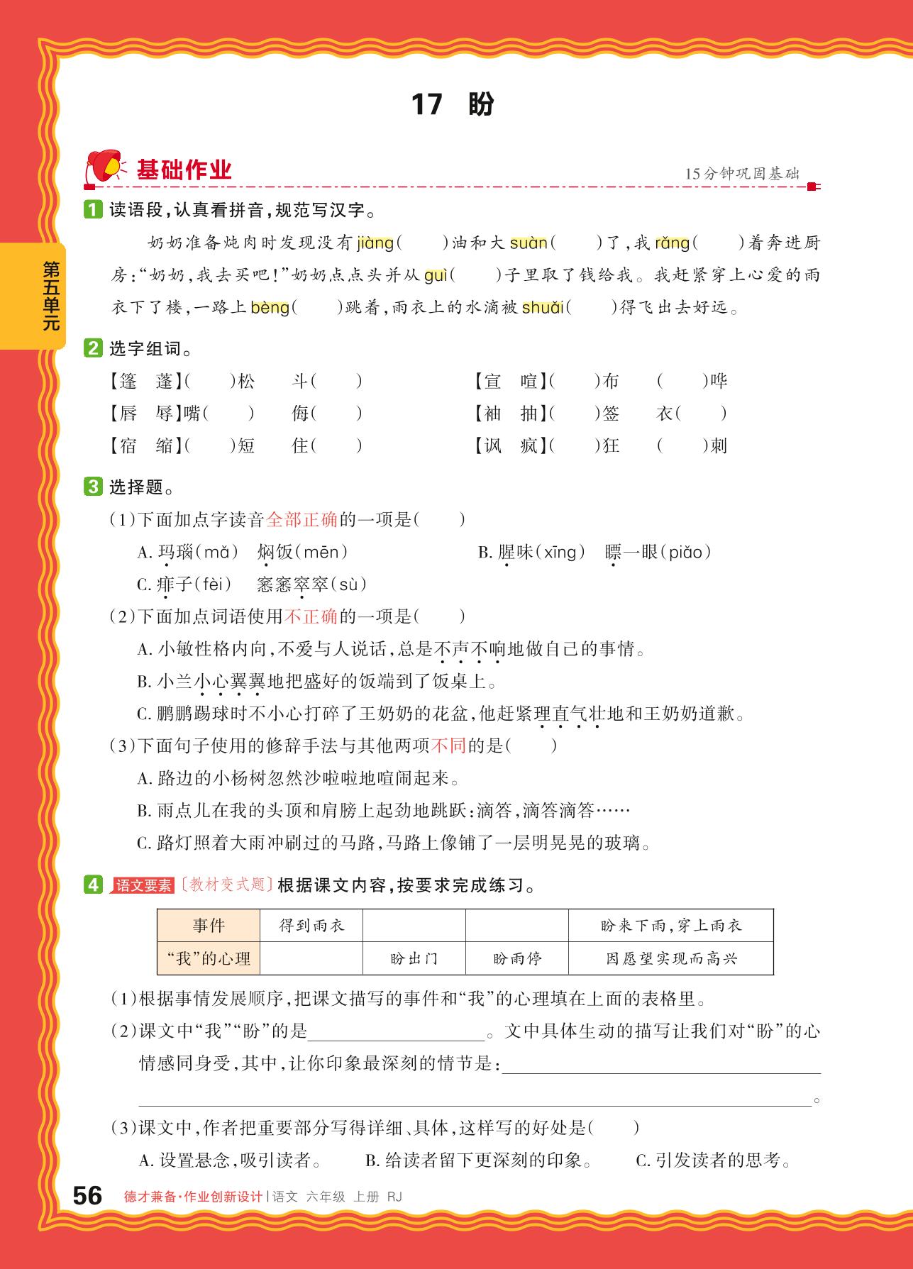 2024秋上册六年级语文人教版 第五单元 习作——17. 盼