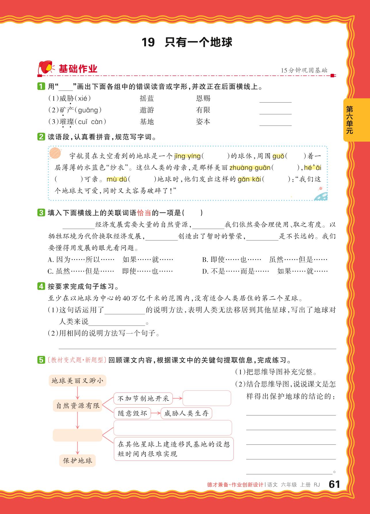 2024秋上册六年级语文人教版 第六单元 保护环境——19. 只有一个地球