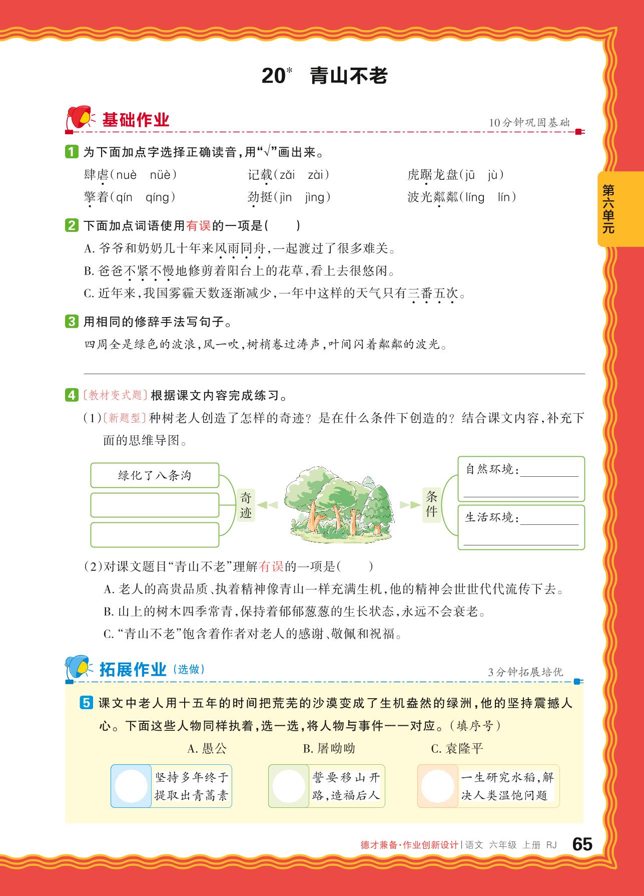 2024秋上册六年级语文人教版 第六单元 保护环境——20. 青山不老
