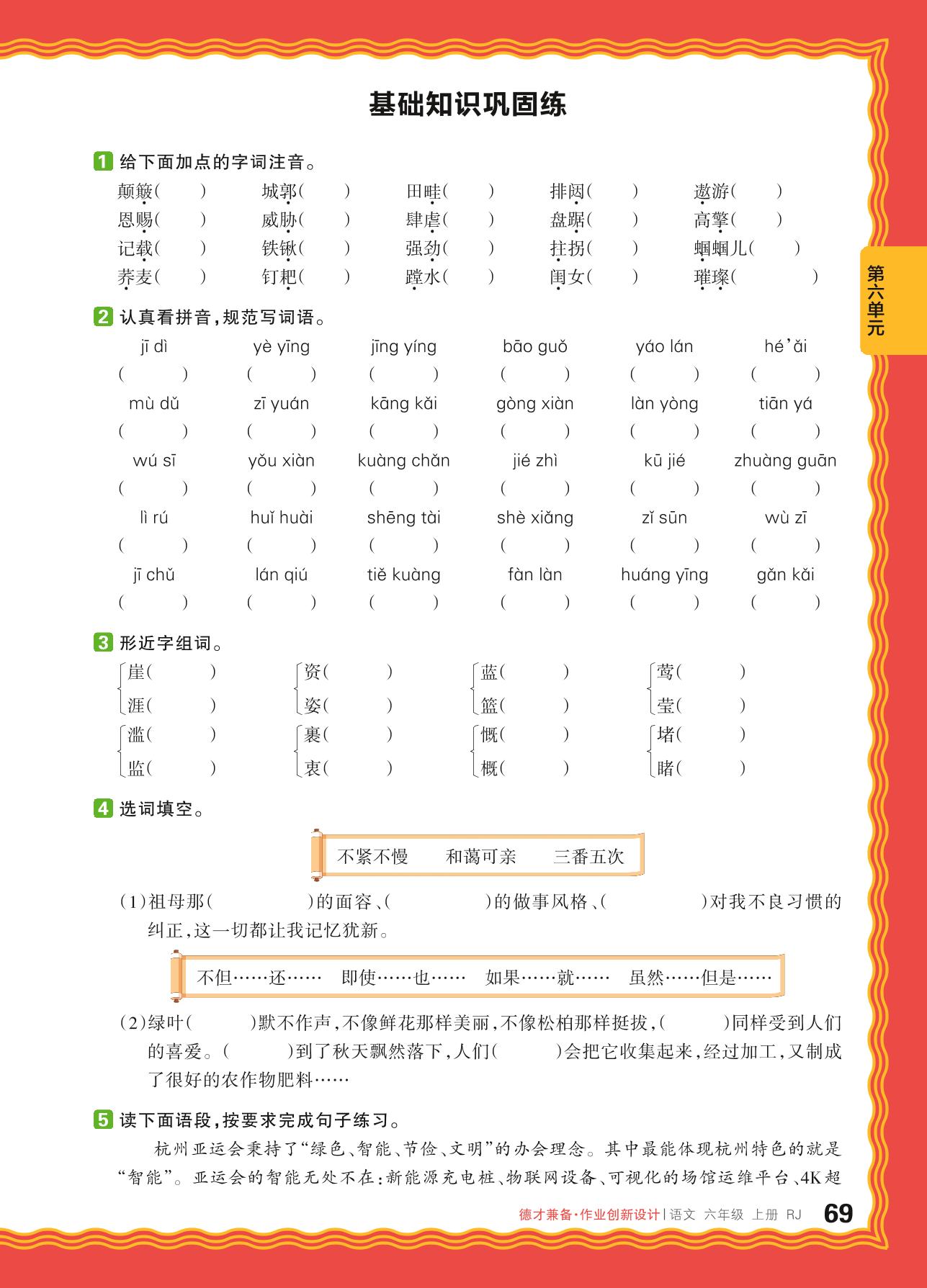 2024秋上册六年级语文人教版 第六单元 保护环境——基础知识巩固练
