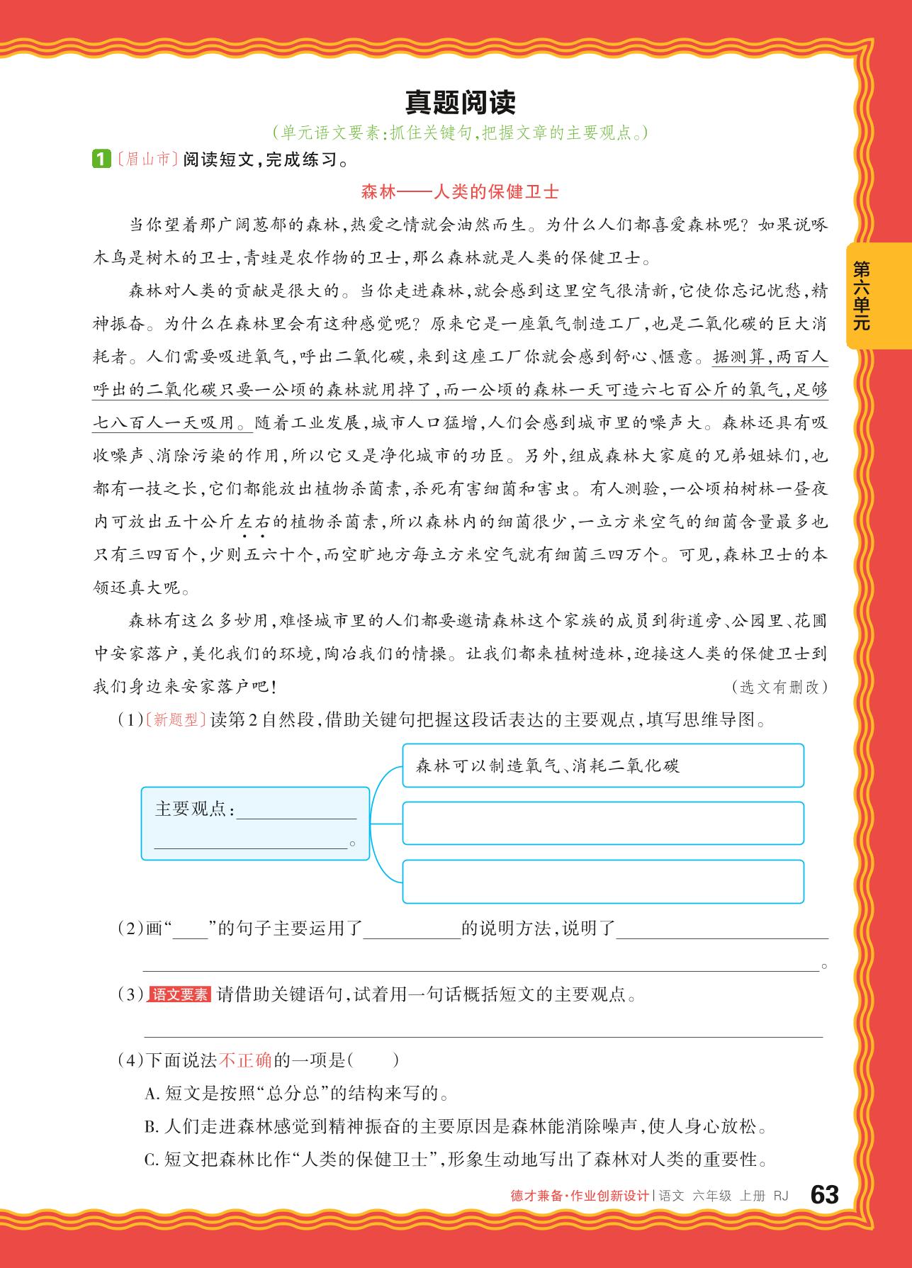 2024秋上册六年级语文人教版 第六单元 保护环境——真题阅读
