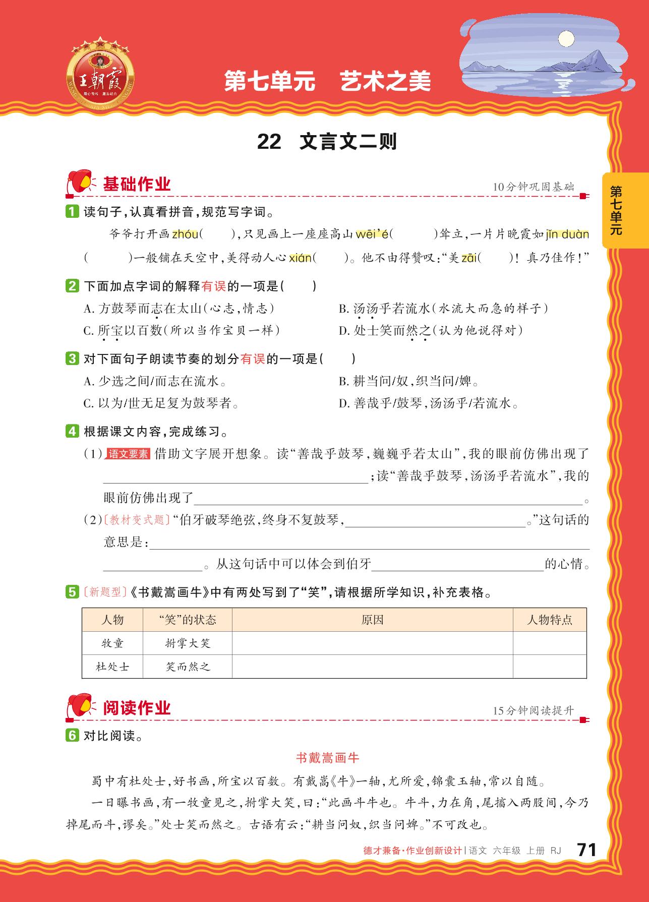 2024秋上册六年级语文人教版 第七单元 艺术之美——22. 文言文二则