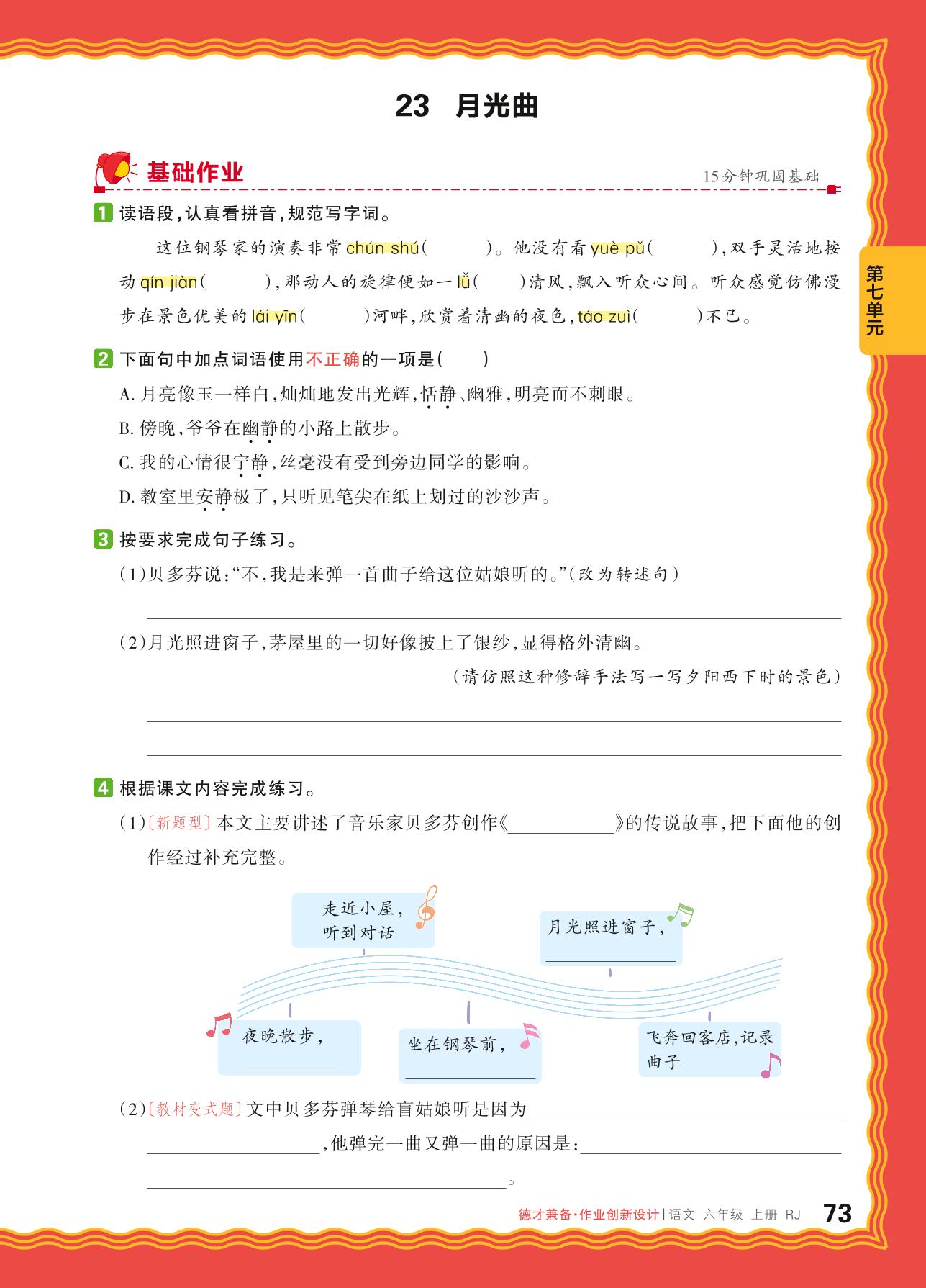 2024秋上册六年级语文人教版 第七单元 艺术之美——23. 月光曲